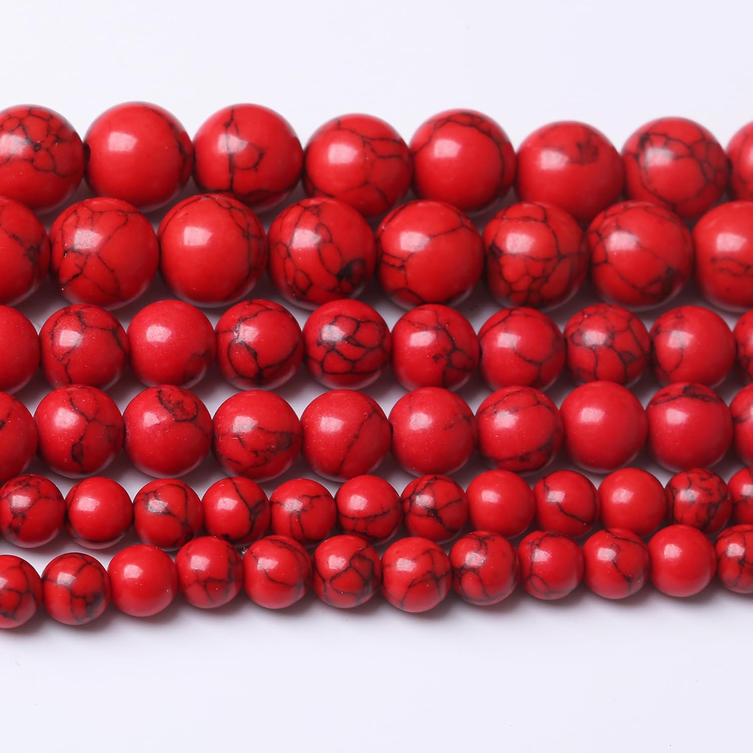 Natural Red Turquoise Stone Beads Gemstone Round Crystal Energy Jade Beads Stone Beads for Jewelry Making DIY Bracelet Necklace Jewelry Making 1 Strand 15.5inch 60PCS 6MM