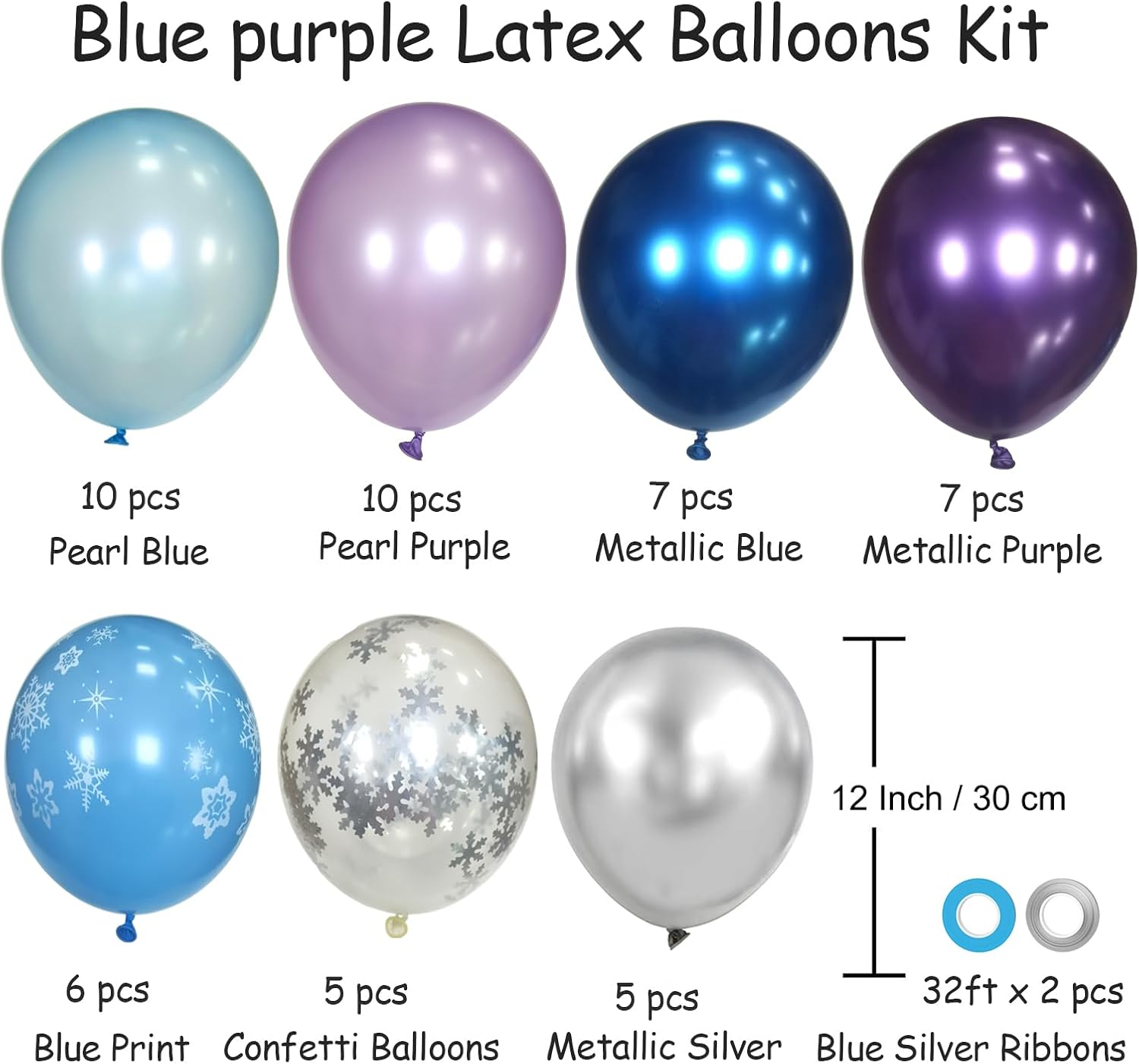 - 【Blue and Purple Silver Balloons Kit】: Our snow balloon blue purple silver party balloons decorations can add atmosphere to your party. silver blue purple balloon is the perfect decoration for happy occasions or celebratory moments such as blue silver themed parties,birthday decorations, princess winter party decorations, decorations suitable for both indoor and outdoor events.