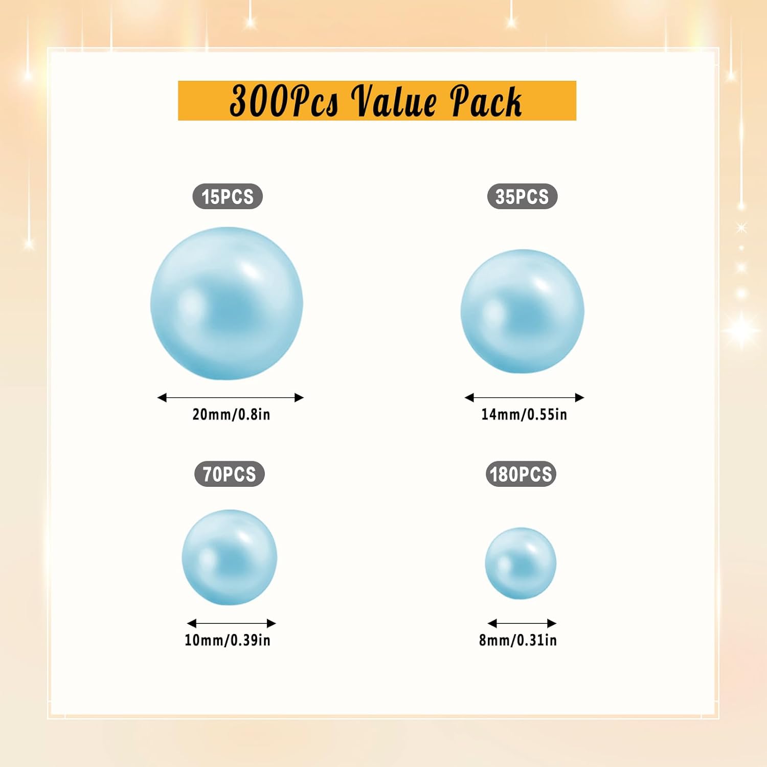 300Pcs Pearl Vase Filler, Lightblue No Hole Faux Pearl Beads for Centerpieces Vases, Candle Centerpieces, Wedding Birthday Party Home Decor 8/10/14/20mm