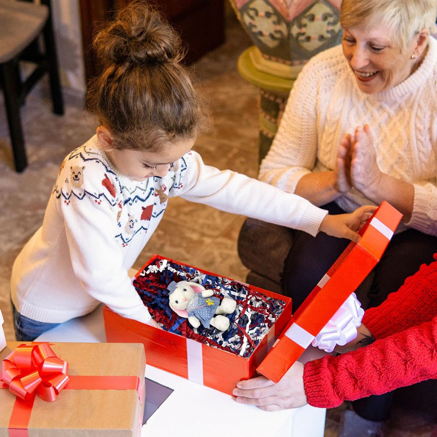 - 【Crinkle Cut Paper Shred】Display your products with fun and colorful Crinkle Cut Paper to create a memorable gift-giving experience with your tasteful choice of gift-wrapping fillers. Ensuring your gifts are beautifully presented. With 1LB Red White Blue of crinkle cut paper shred filler, you'll have plenty to fill those extra spaces in your packages, is suitably provides maximum protection for your gifts.