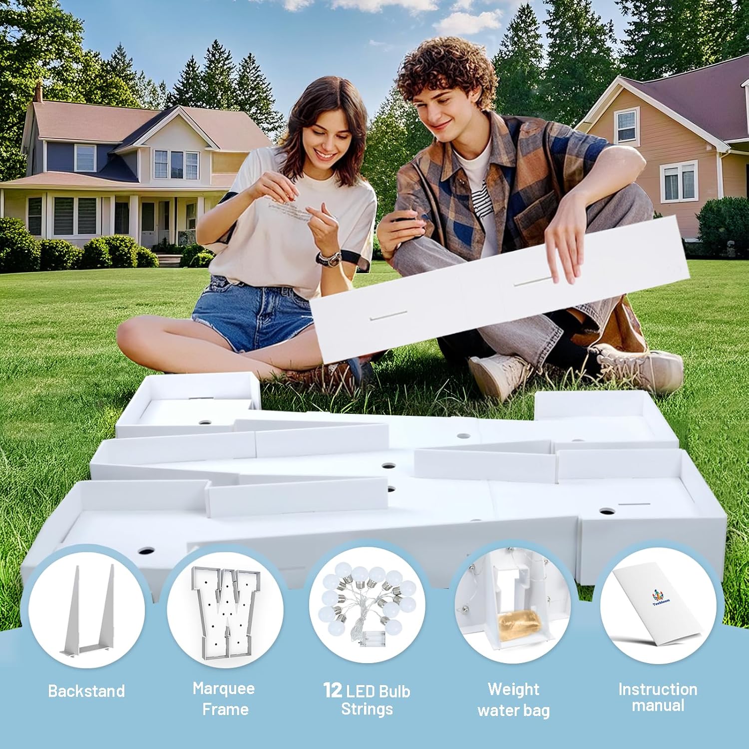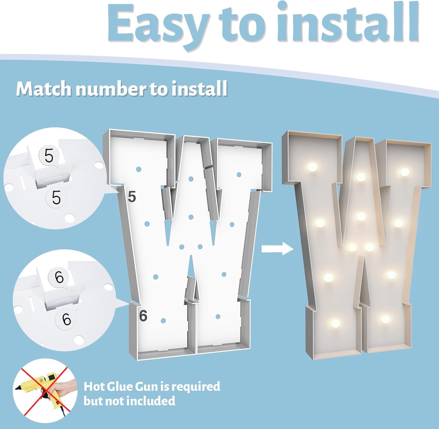 4FT Marquee Light Up Letters W,Party Decoration Large Marquee Light Up Letters with Weighted Water Bag,Pre-cut Foam Board Set Can Be Used for Birthdays,Weddings,Baby Anniversaries