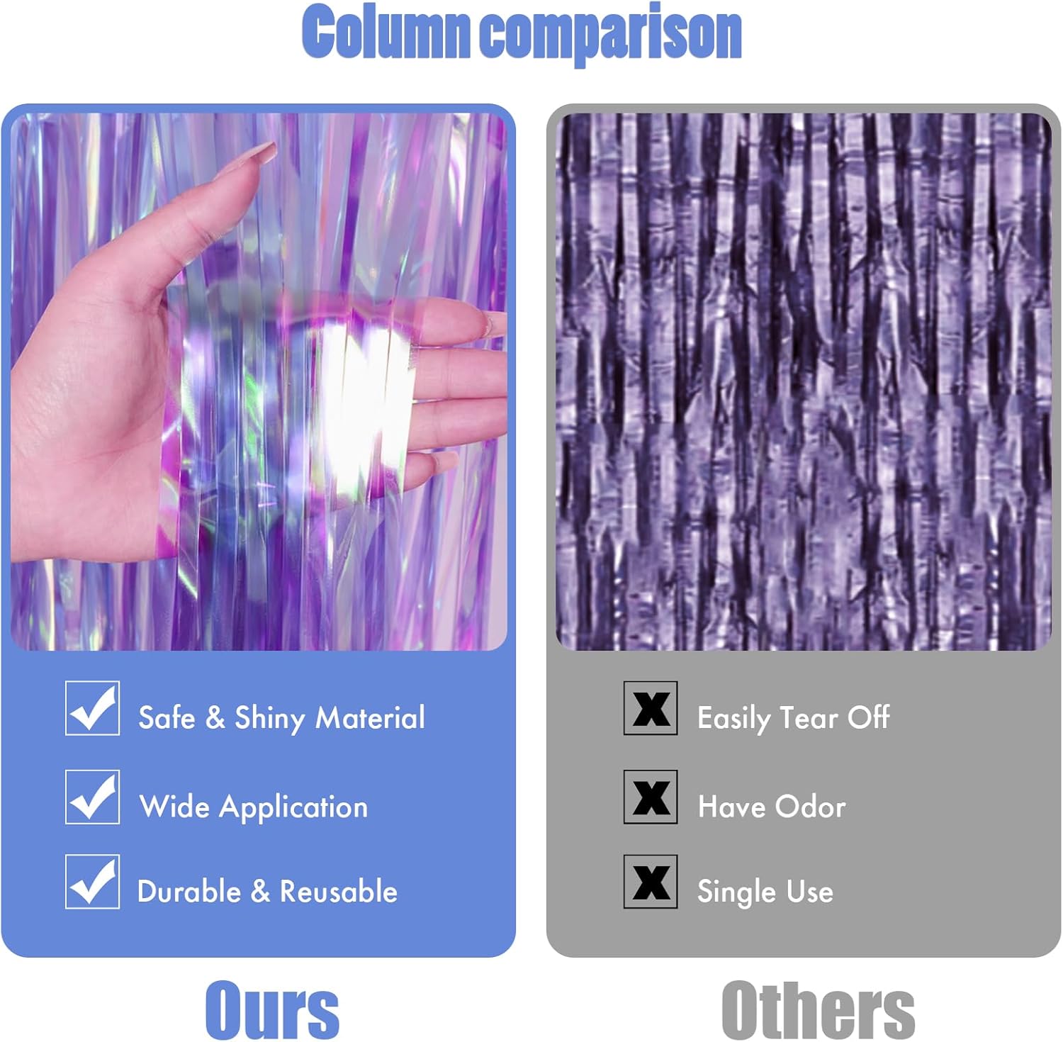 - PREMIUM MATERIAL- This clear purple tinsel backdrop is made of high-quality shiny tinsel, non-toxic, odorless, and non-fading, safe for families with children and pets. Just transform your home into a shining streamers happy birthday decorations, and enjoy the party.