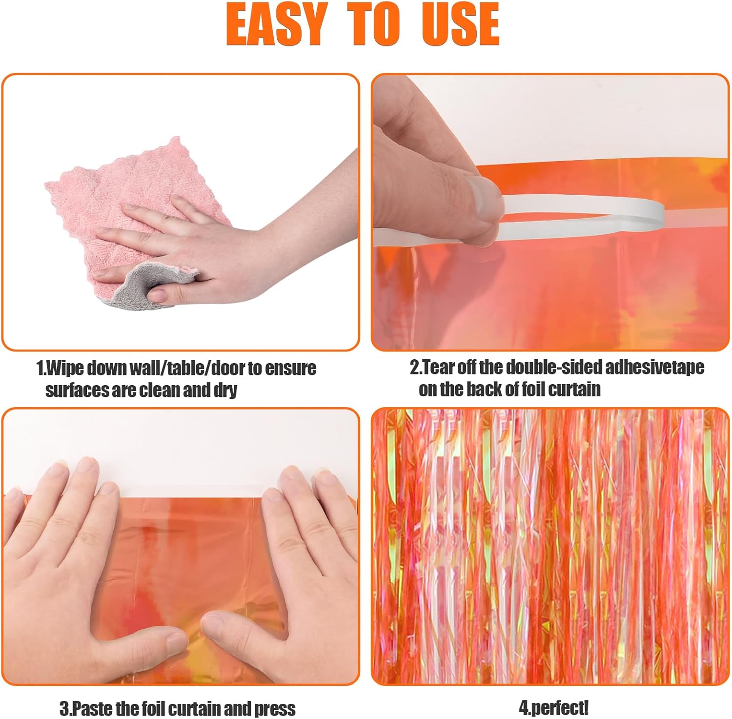 - PREMIUM MATERIAL- This clear orange tinsel backdrop is made of high-quality shiny tinsel, non-toxic, odorless, and non-fading, safe for families with children and pets. Just transform your home into a shining streamers happy birthday decorations, and enjoy the party.