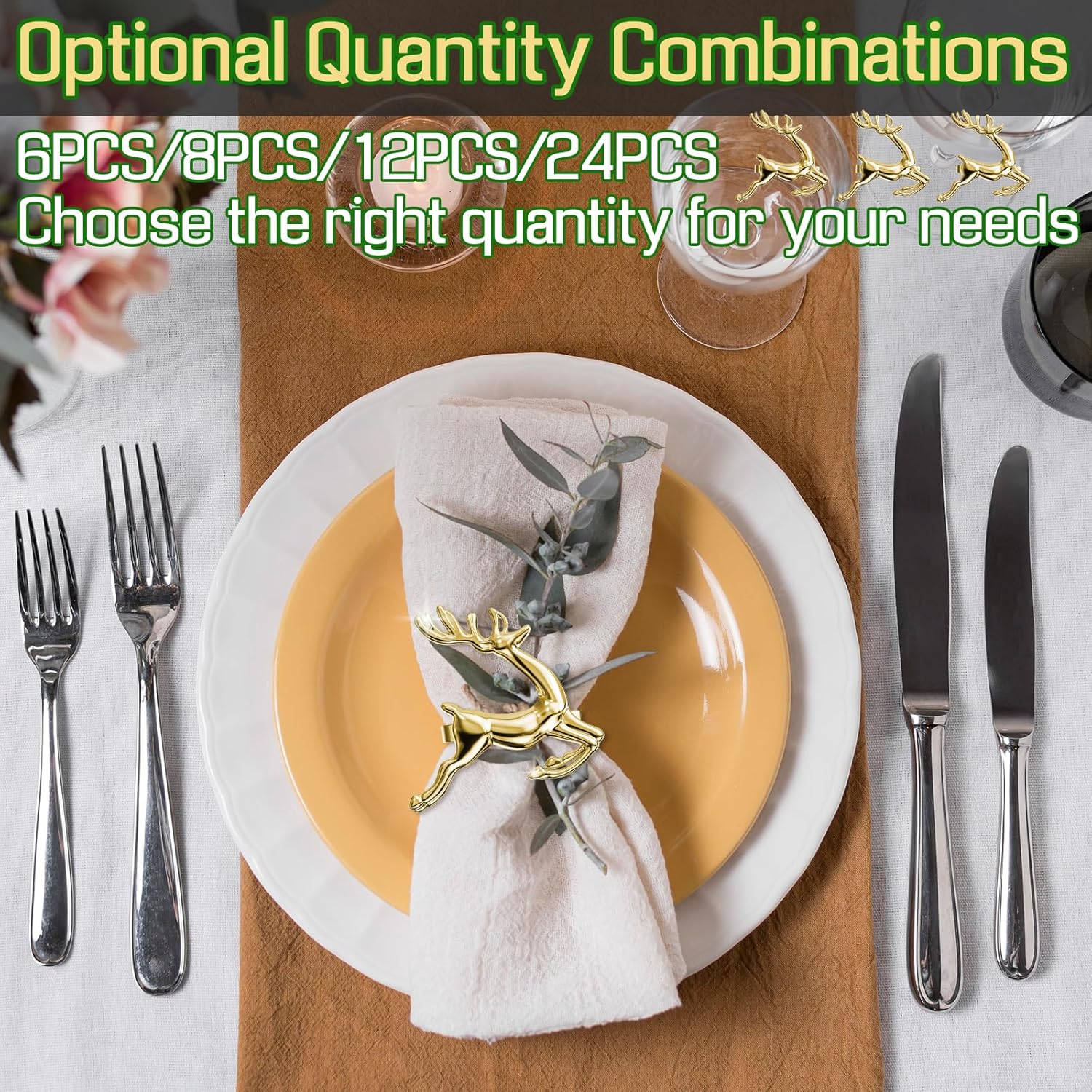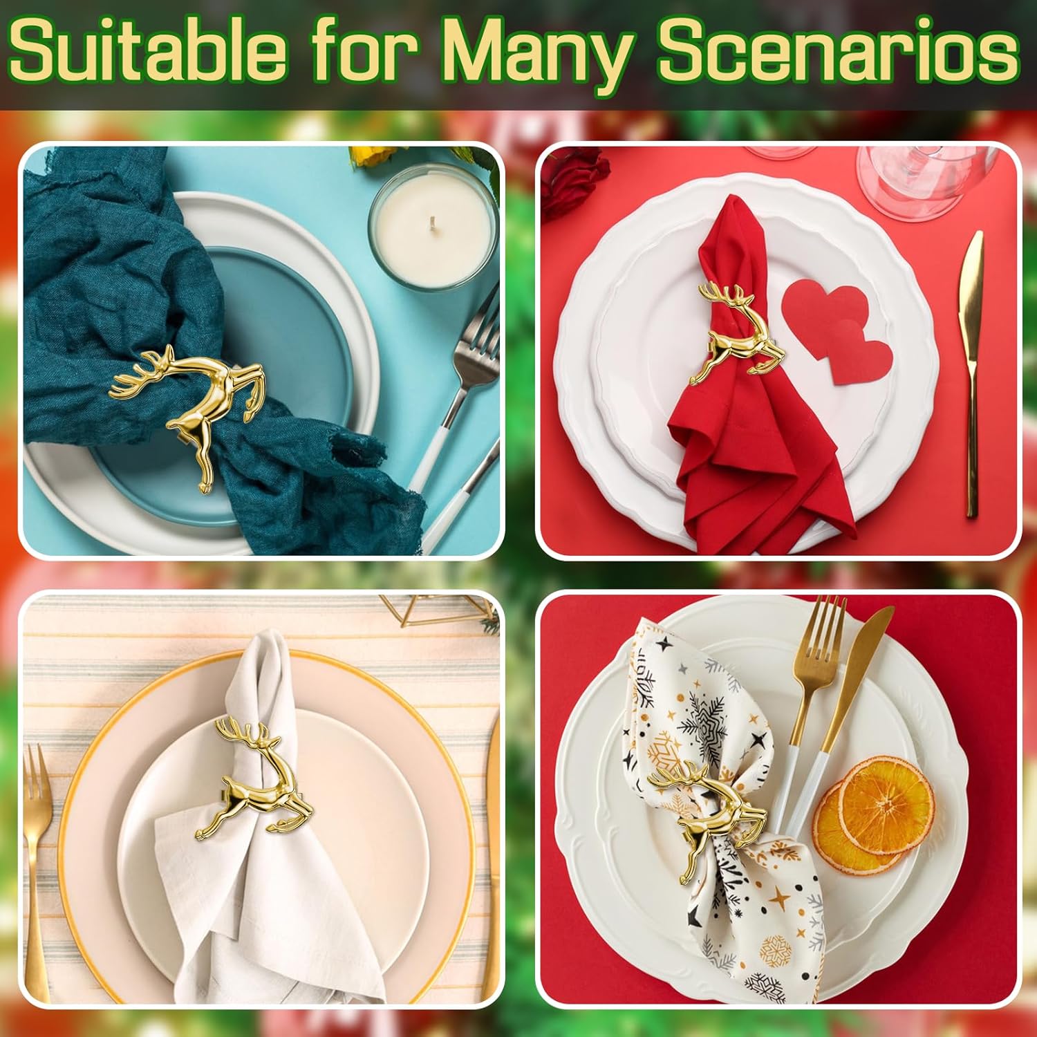 - Santa Bling Napkin Rings: You will receive gold deer napkins rings set of 12, simple and elegant, delicate and romantic, suitable for Christmas napkins cloth of different colors and materials. The reindeer Christmas decoration napkins rings could add more festive atmosphere to your Christmas table decorations for dinner party and become a highlight