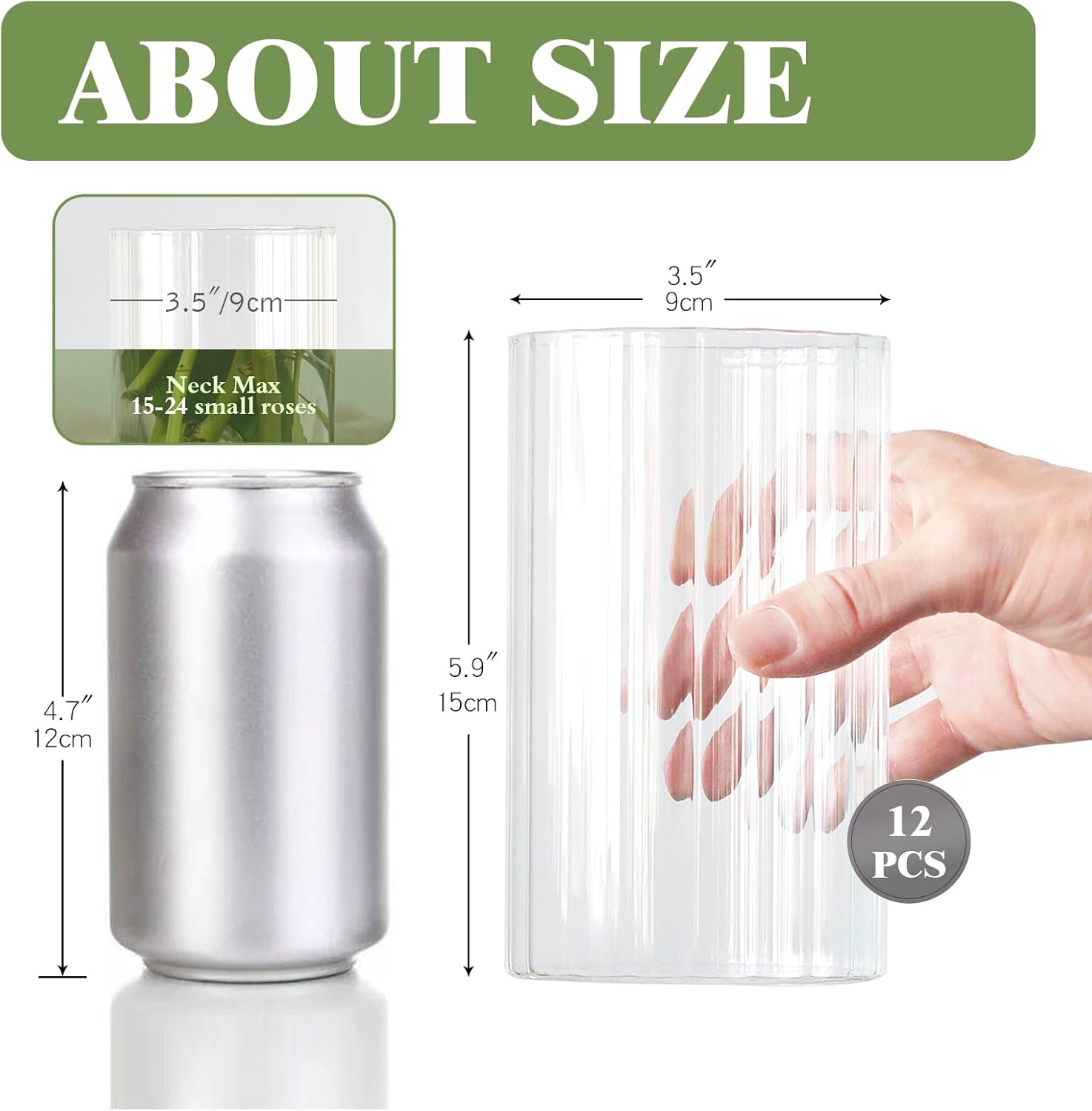 - 【Package Including】You will get 12 pack ribbed glass vases with a diameter of 3.5'' and 5.9'' tall.providing an ideal size for floral arrangements/home decor/ hurricane candle holder.