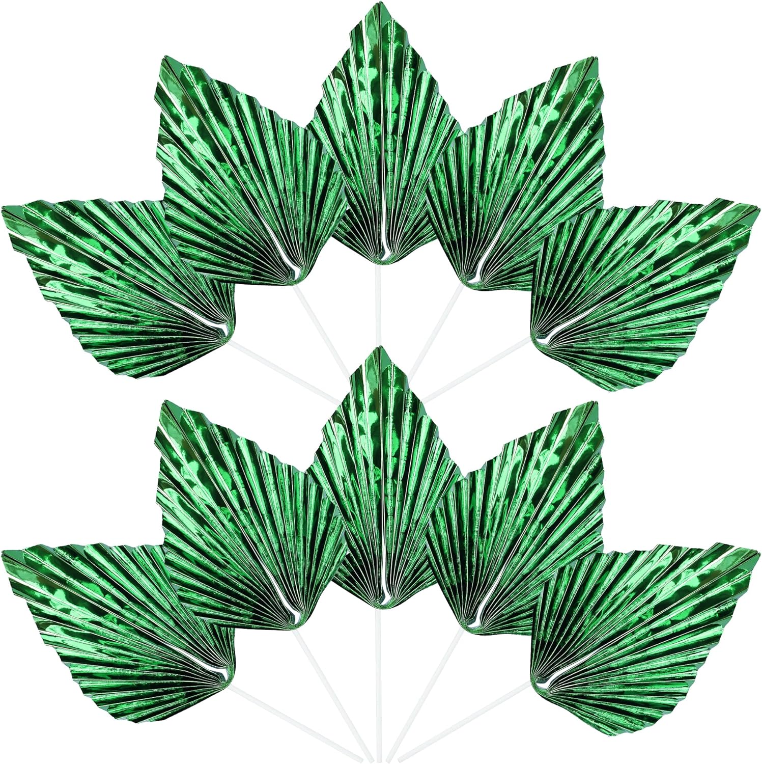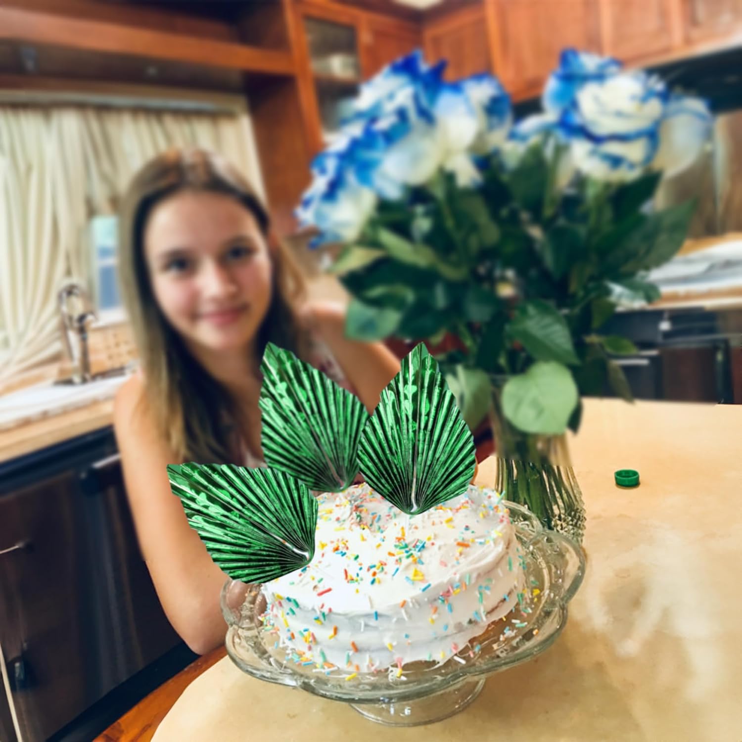 Ephlyn 6Pcs Paper Palm Leaves Fan Cake Toppers Palm Leaf Fan Cake Picks Craft DIY Fan Cupcake Toppers Palm Spear Leaves Cake Decorations for Baby Shower Wedding Birthday Party Supplies Bright Green