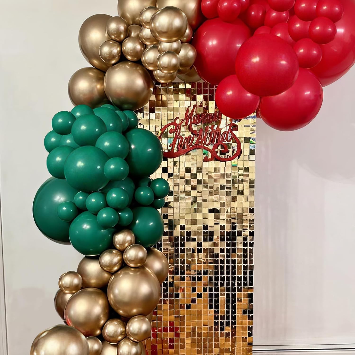 Red Green Gold Balloons, Vintage Dark Green Pearl White Confetti Balloons for Birthday, Baby Shower, Christmas Theme Party, Wedding, Graduation Decorations