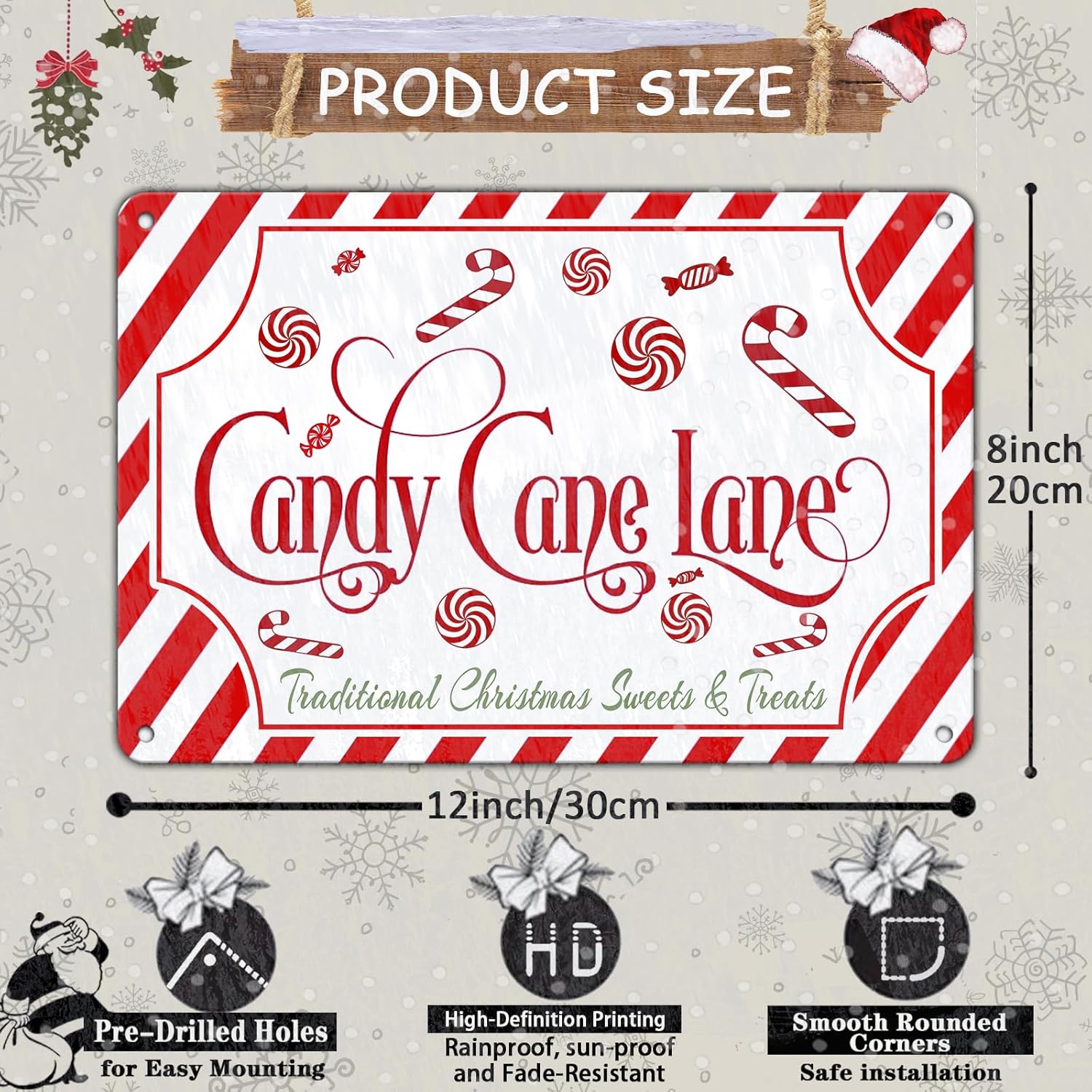 - Christmas Candy Cane Lane Metal Sign Easy To Install : The Vintage Christmas Tin Sign has Rolled Edges and Rounded Corners to Avoid Injury, Plus It Comes With 4 Pre-Drilled Holes, Requiring No Adhesive or Special Equipment. This ​​Christmas Sweets Metal Sign is Designed to Withstand Outdoor and Indoor Conditions, So You Can Display It Anywhere You Like.