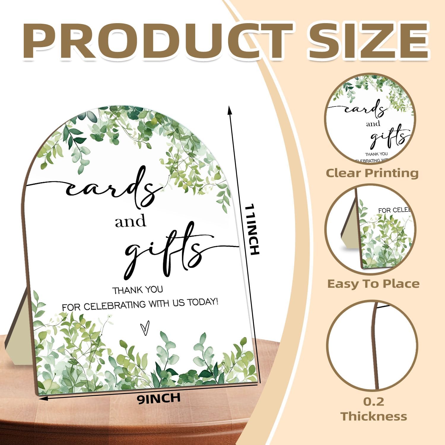 Cards and Gift Sign, Thank You for Your Gift and Well Wishes Sign, Eucalyptus Leaf Decoration Bridal Shower with Stand, Baby Shower Favors, Party Decor Supplies 9 * 11IN