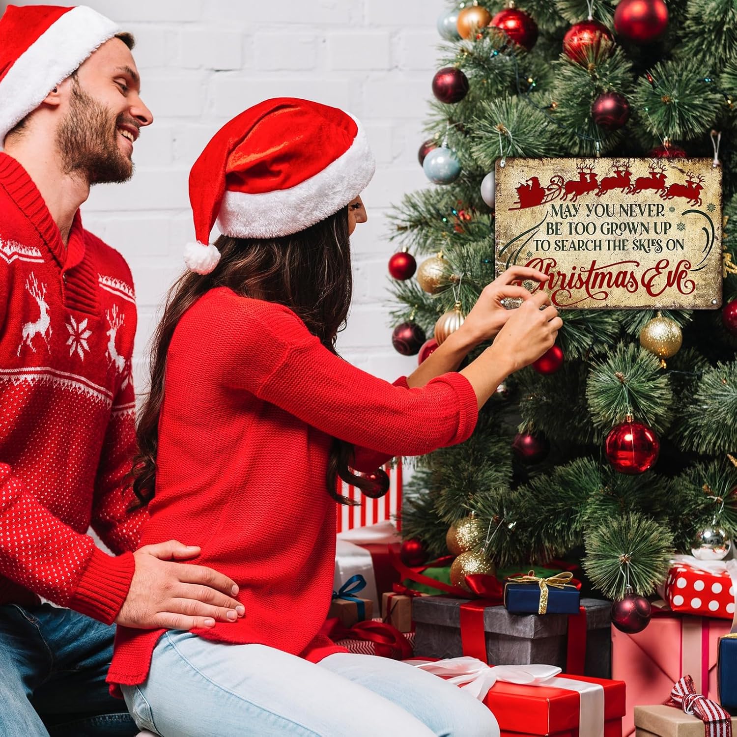 Christmas Sign Wall Art Vintage May You Never to Too Grown Up to Search The Skies Christmas Eve 12x16 Inch Rustic Metal Sign for Spacious Wall Decor and Holiday Display