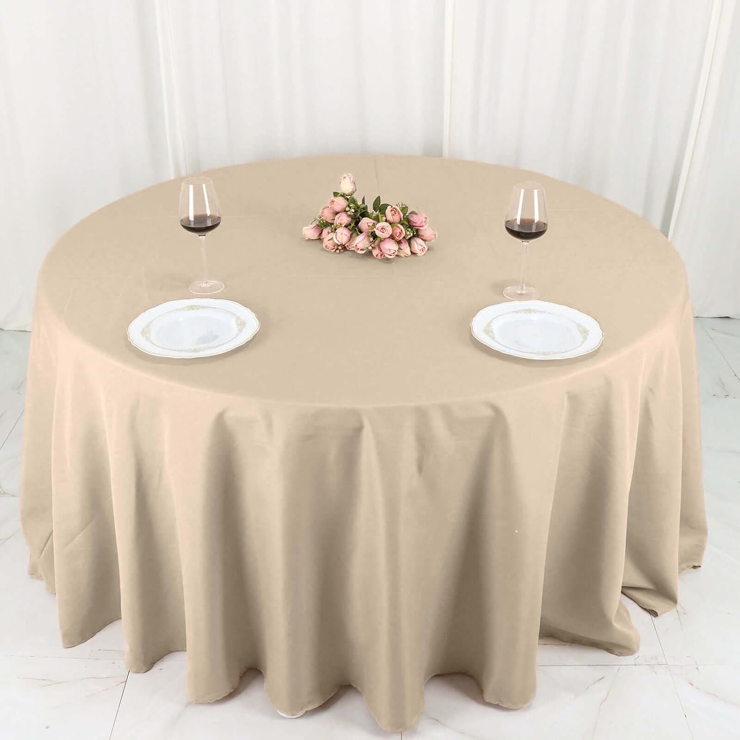 Efavormart Round Tablecloth, 132 Inch Stain & Wrinkle Resistant Washable Table Cloth, Decorative Polyester Fabric Table Cover for Banquet, Wedding, Dining- Nude Beige
