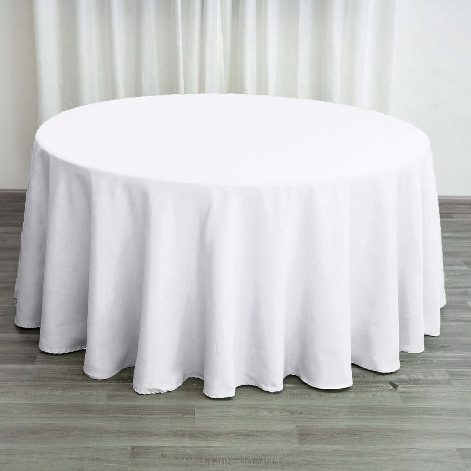 Efavormart Round Tablecloth, 120 Inch Stain & Wrinkle Resistant Washable Table Cloth, Decorative Polyester Fabric Table Cover for Banquet, Wedding, Dining - White