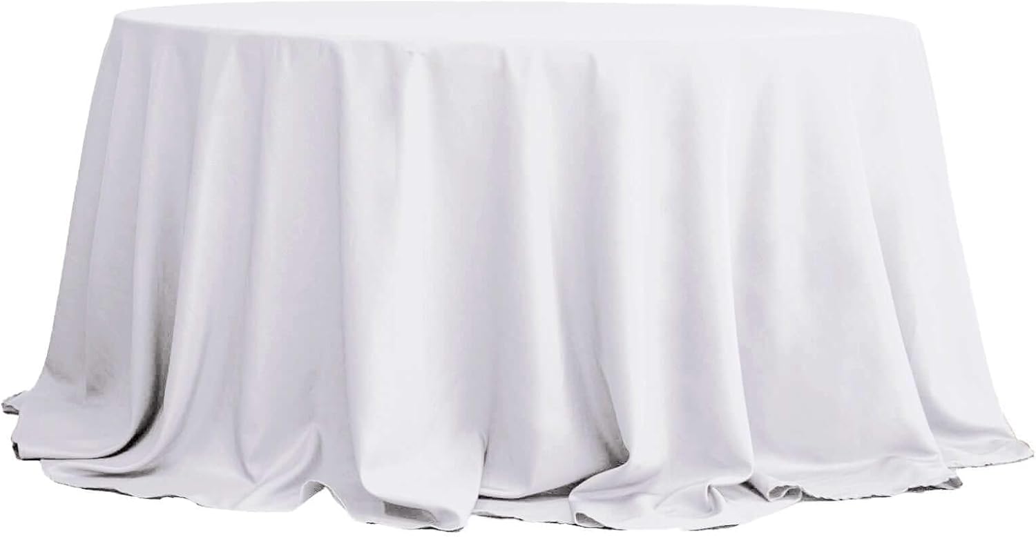 Efavormart Round Tablecloth, 132 Inch Stain & Wrinkle Resistant Washable Table Cloth, Decorative Polyester Fabric Table Cover for Banquet, Wedding, Dining- White