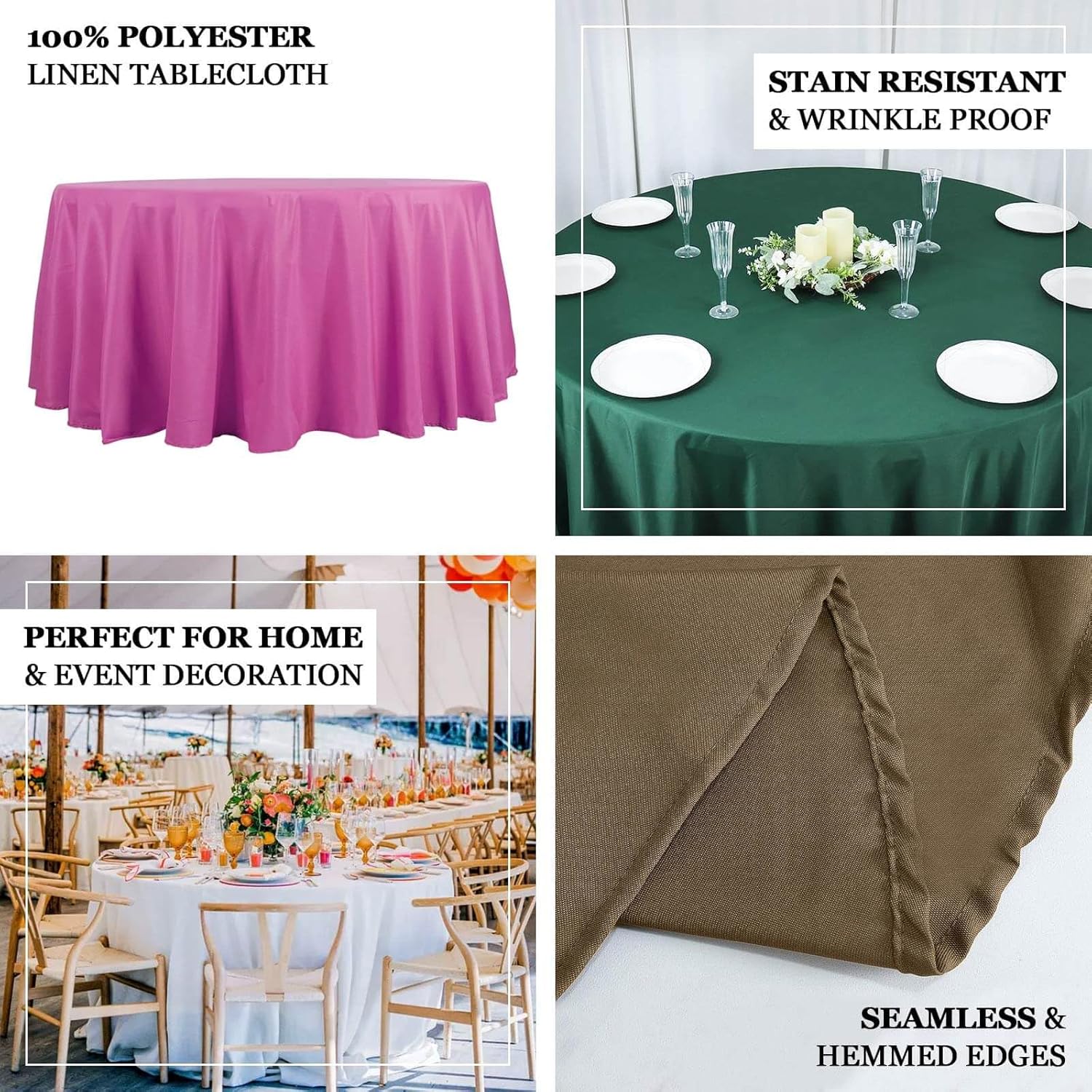 Efavormart Round Tablecloth, 132 Inch Stain & Wrinkle Resistant Washable Table Cloth, Decorative Polyester Fabric Table Cover for Banquet, Wedding, Dining- Ivory