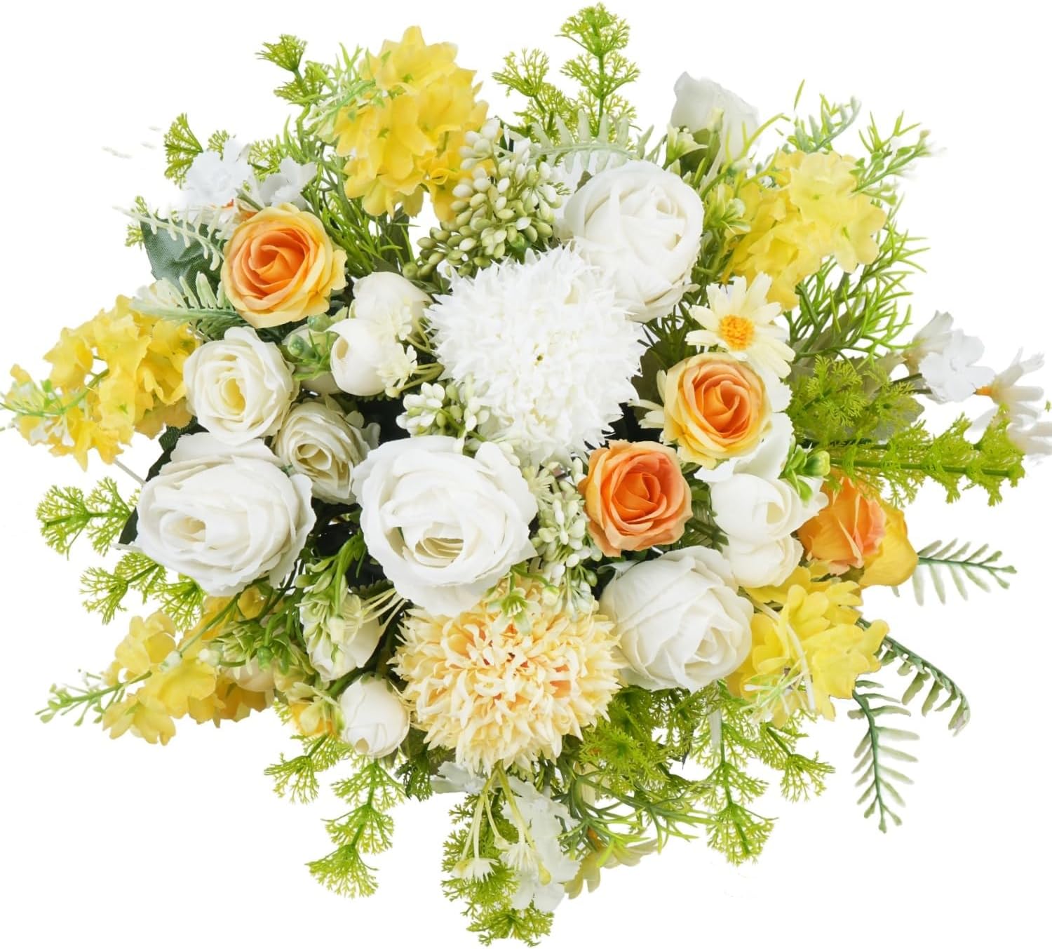 - [Ideal Dimention]:Measuring approximately 13.4 inches in height and 12.6 inches in width, our artificial flower bouquet fits perfectly in various spaces.Whether placed on a mantel, table centerpiece, or window display.