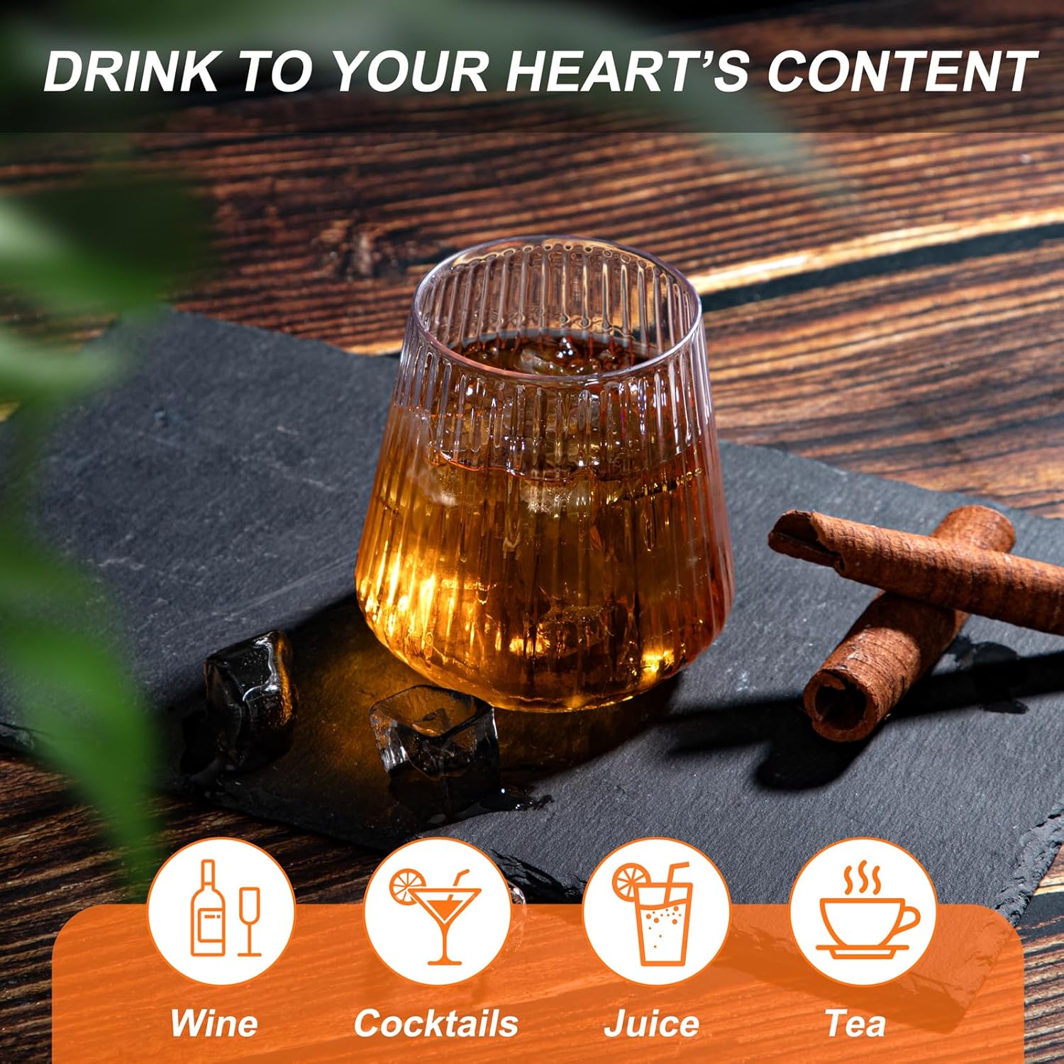 - Ribbed and Stemless Design:Featuring a ribbed and stemless design, these plastic cocktail glasses offer a modern and sleek appearance that complements any occasion. The plastic wine glasses disposable not only provides a comfortable grip and more elegant but also makes them easier to stack and store, saving space. The stemless design also provides better stability, reducing the risk of tipping compared to traditional stemmed cups.
