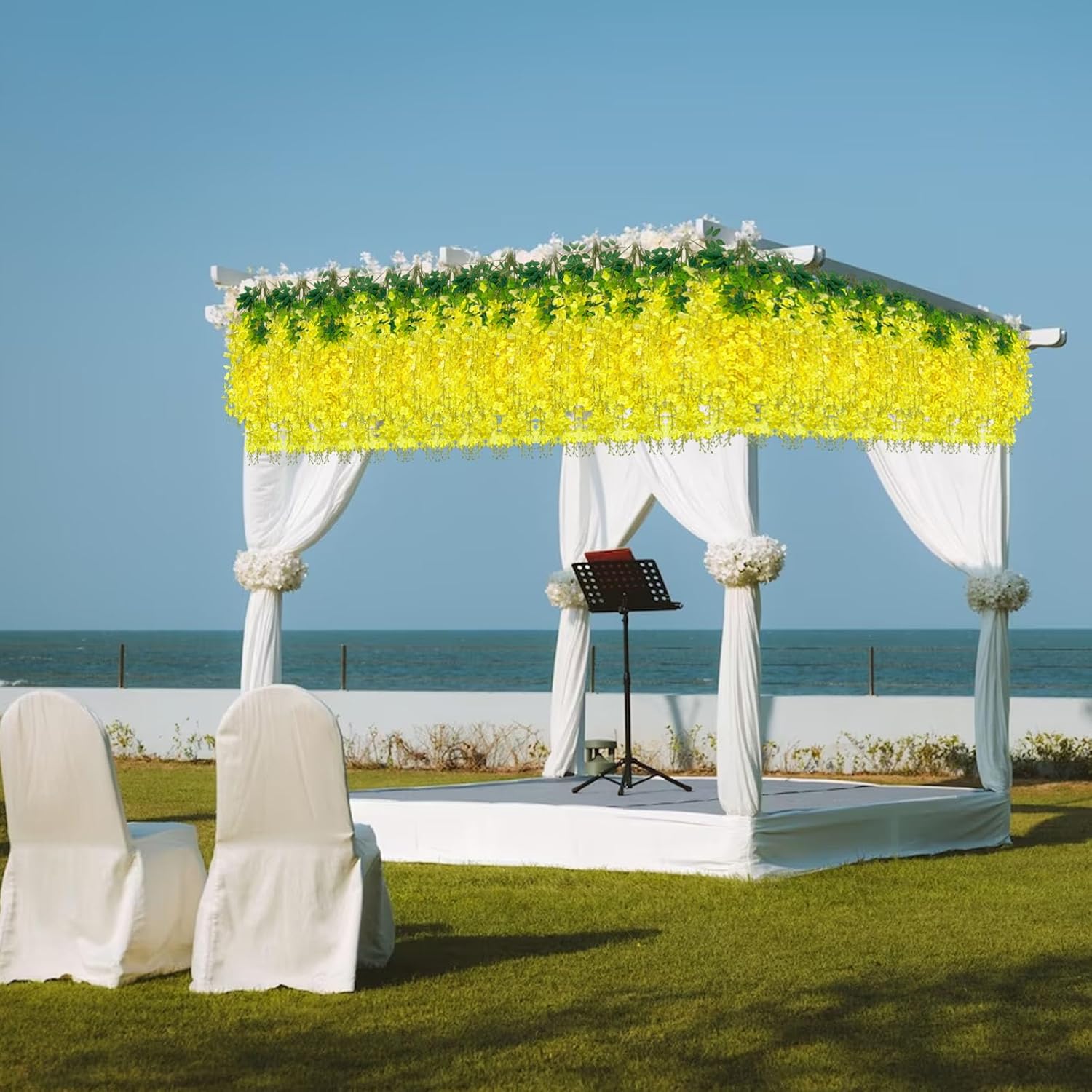 - 【Easy to Install】The yellow hanging garland flowers stem are made of durable metal wire and covered with plastic. You can bend the wisteria flower in any shape to satisfy your decoration imagination without damaging it. And the wisteria flower is very easy to install and remove, you can reduce a lot of troubles on installation.