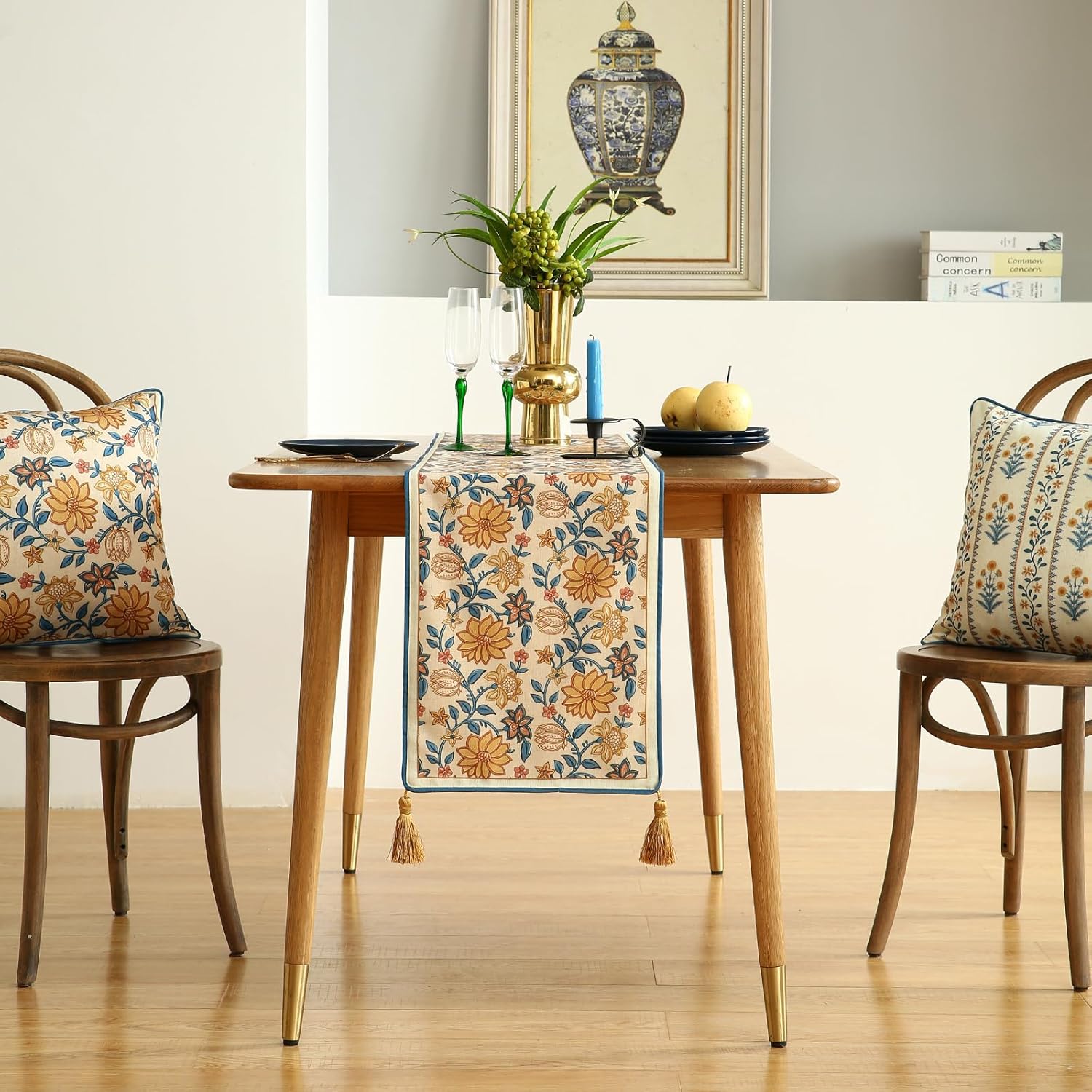 - Care Instructions:For table runners with tassels,hand washing or dry cleaning is recommended.Wash gently and air dry to maintain fabric quality.Table runners without tassels can be machine washed on a gentle cycle.After washing,they can be tumble dried on low heat; ironing is optional.Do not use bleach,as it may damage the fabric.
