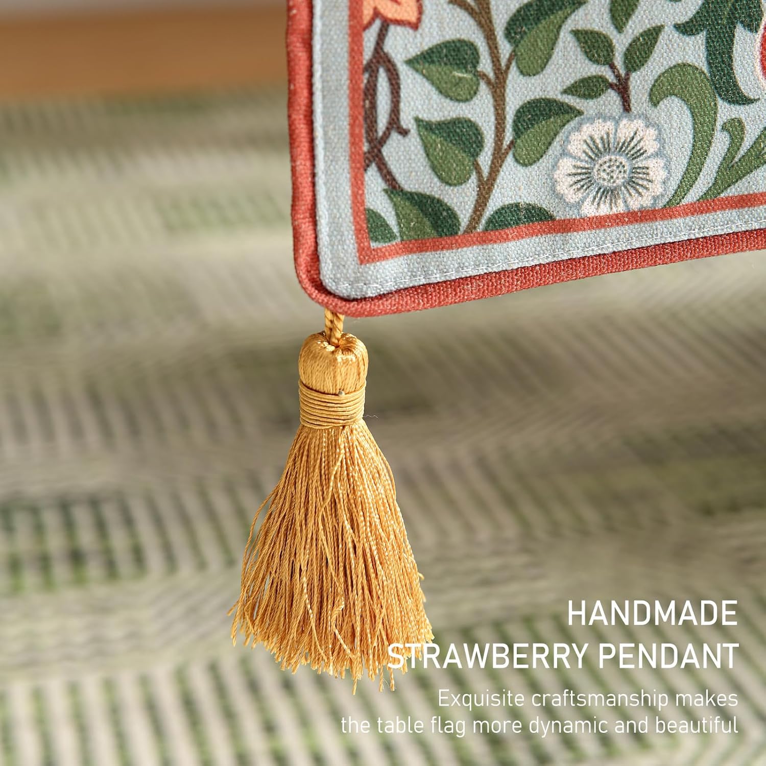 - Unique Design:Each table runner features patterns hand-drawn by our designers,showcasing exquisite details and rich textures for stunning visual appeal.The meticulous stitching ensures a smooth,wrinkle-resistant,and durable finish.With its fresh,rustic yet elegant style,it adds vibrancy and charm to your home decor