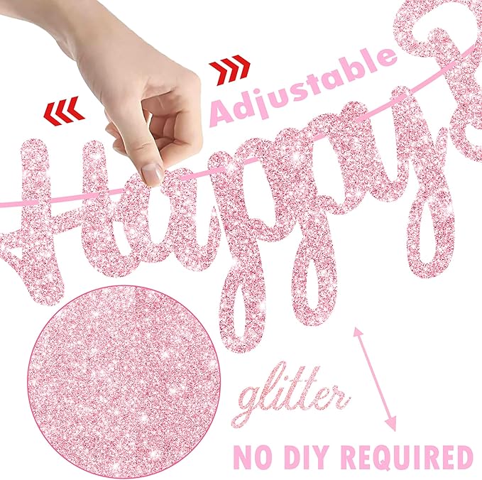 - Glitter pink happy birthday design:Bright flower-themed banners with golden pink Happy birthday banners are especially suitable for girls or women. Romantic and elegant combination to give family and friends the best birthday wishes