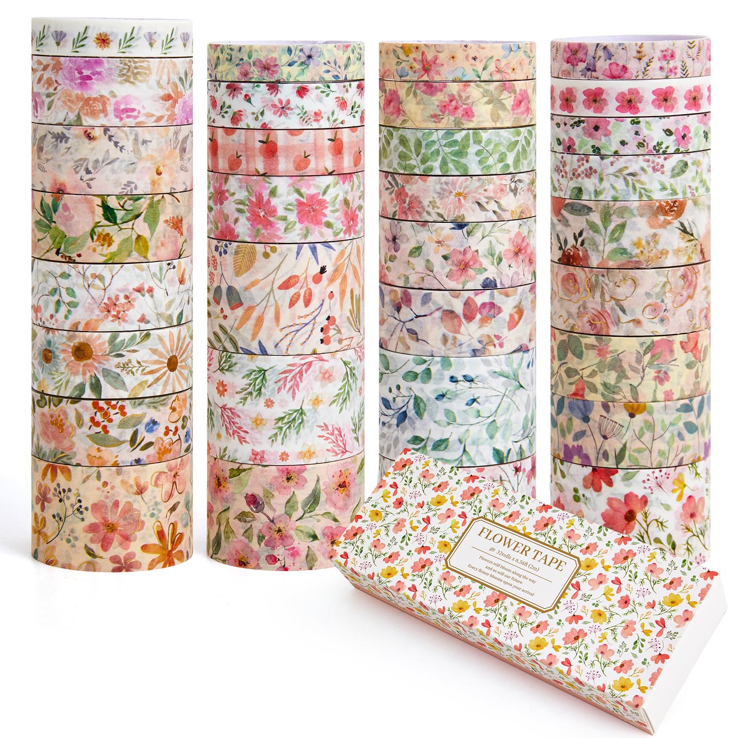 32 Rolls Washi Tape Set, Colored Floral Decorative Masking Tape, Artists Tapes for Journaling, Junk Journal, DIY Craft Projects, Scrapbooking Supplies Decor