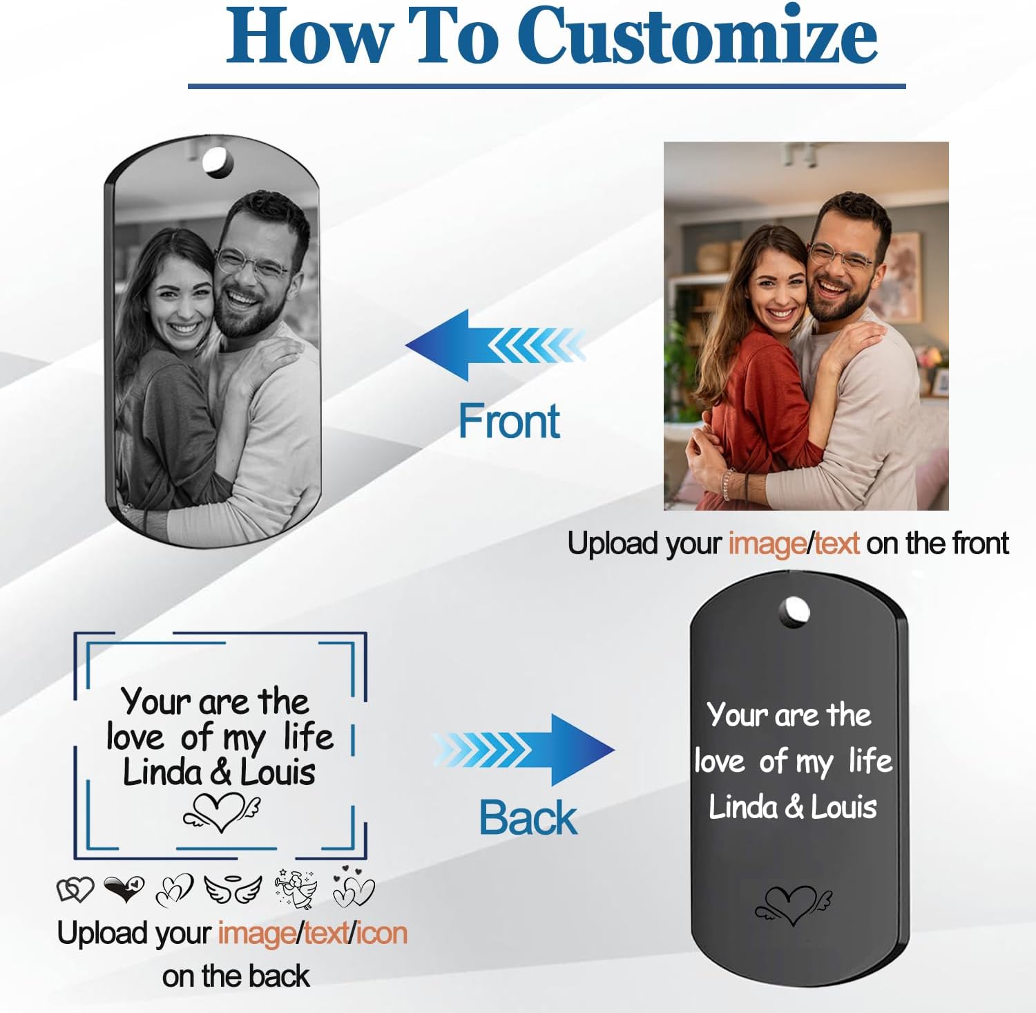 Custom Keychain with Picture, Personalized Keychain with Engraved Photo/Text, Gifts for Family and Friends