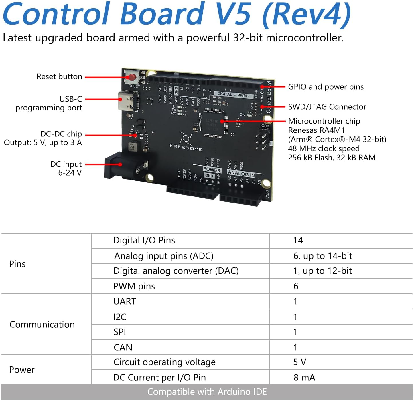 Freenove Complete Starter Kit with Board V5 Rev4 Mini (Compatible with Arduino IDE), Arm Cortex-M4 Microcontroller, 474-Page Detailed Tutorial, 343 Items, 90 Projects