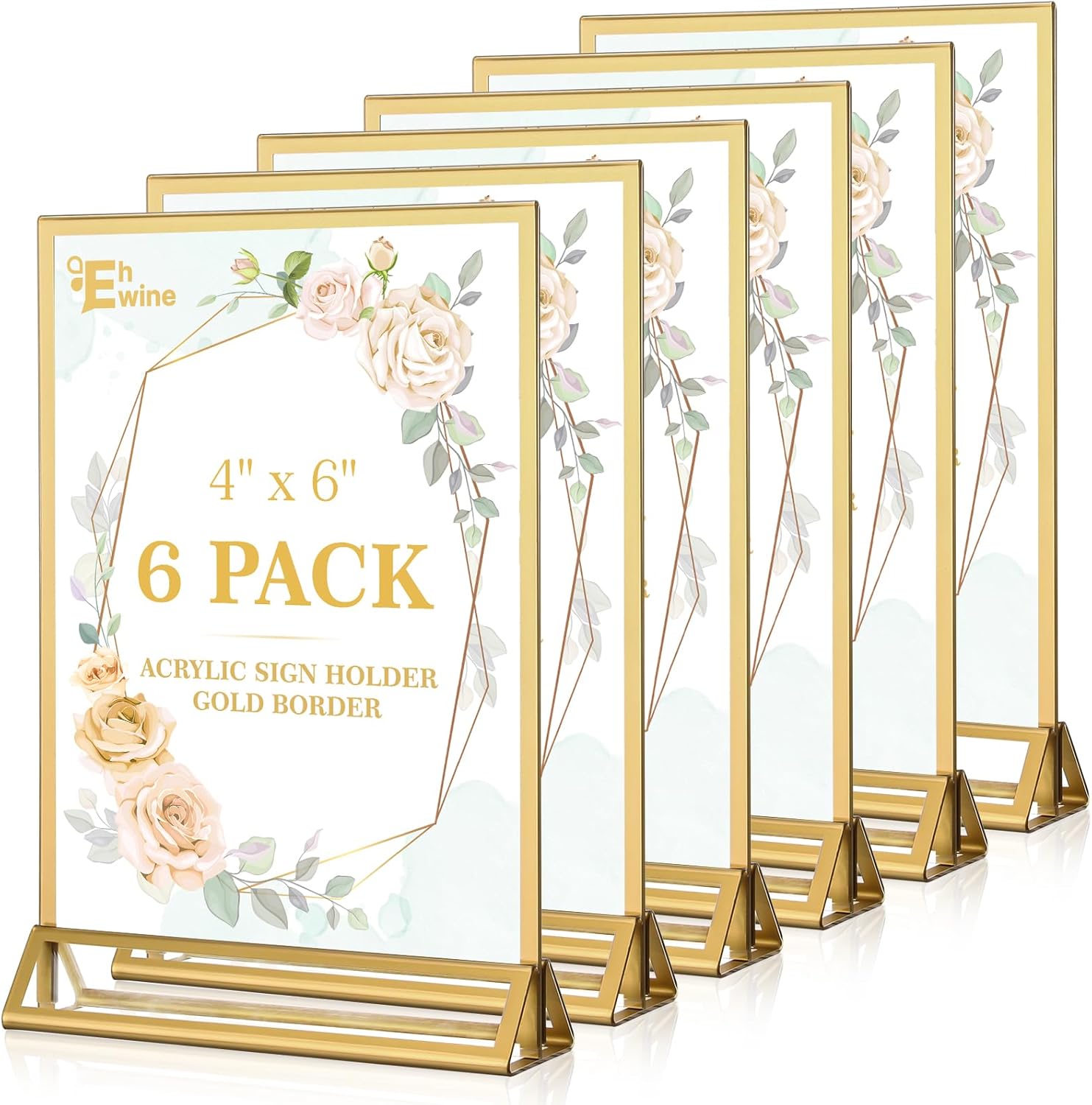 - Clear Golden Border Picture Frame: EHWINE acrylic sign holders are incredibly clear and transparent, providing a professional look to your displays. With no distortion or cloudiness, your message will be conveyed with crystal-clear clarity