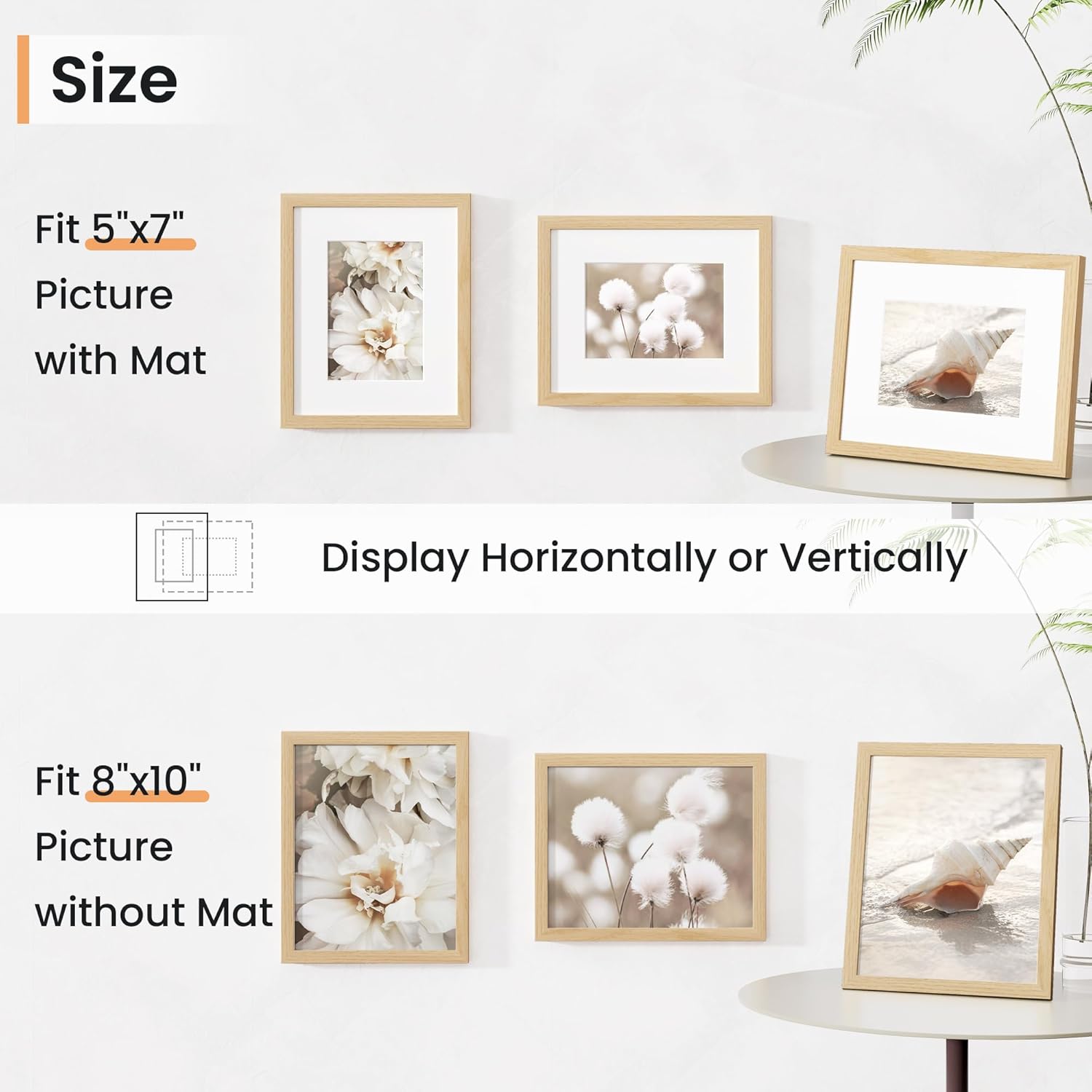 8x10 inch Picture Frame, 8x10 Photo Frames with 5x7 Removable Mat - High Definition Plexiglass - Vertical and Horizontal Display - Wall Hanging Frame - Oak Color, 12 Pack