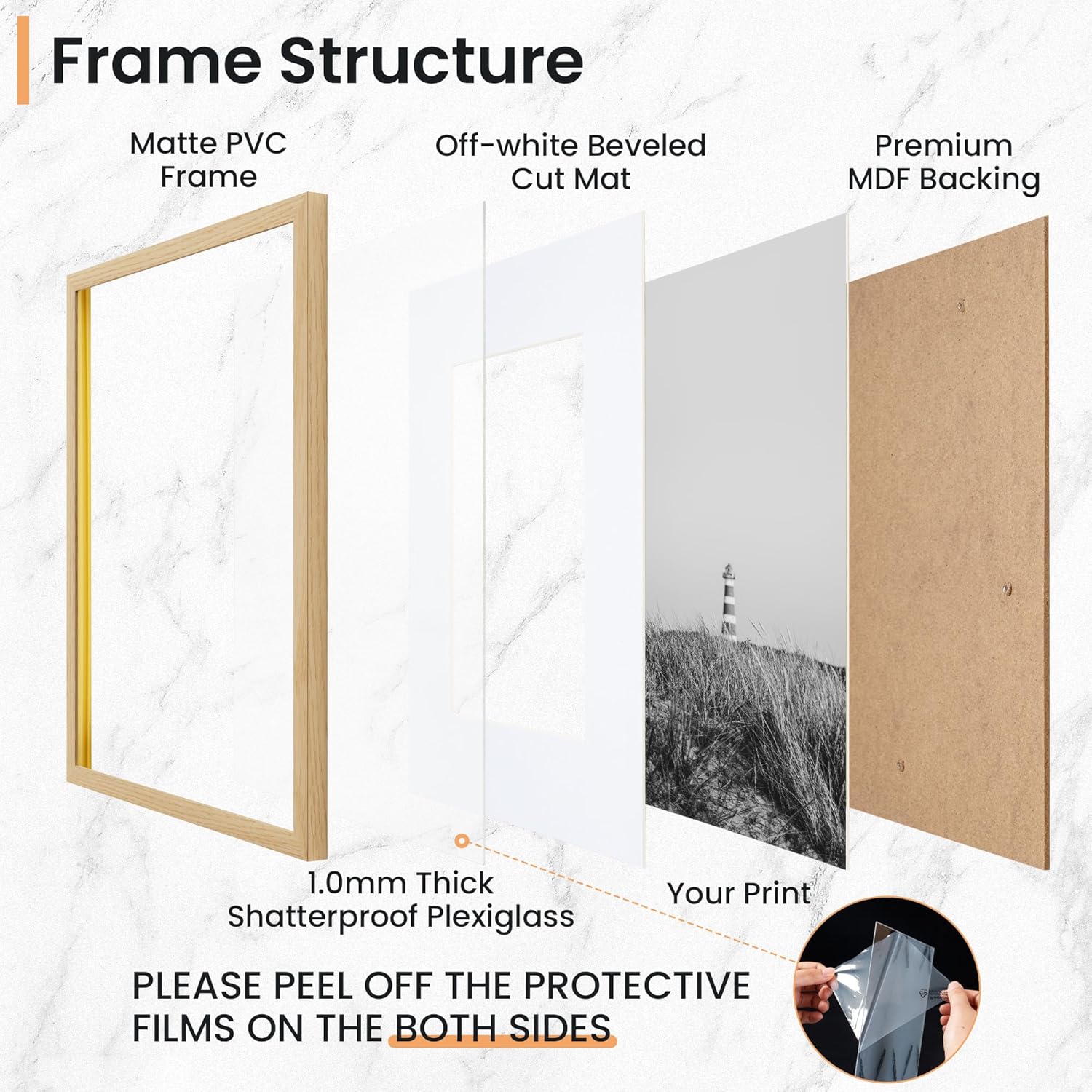 - High-Quality: Our 11x14 picture frame is made of environmentally friendly plastic, strong and durable. With a moisture-proof backplane design, the angle is hand-polished to stop scratching your skin. Use a polished polycarbonate board front to see your photos clearly.