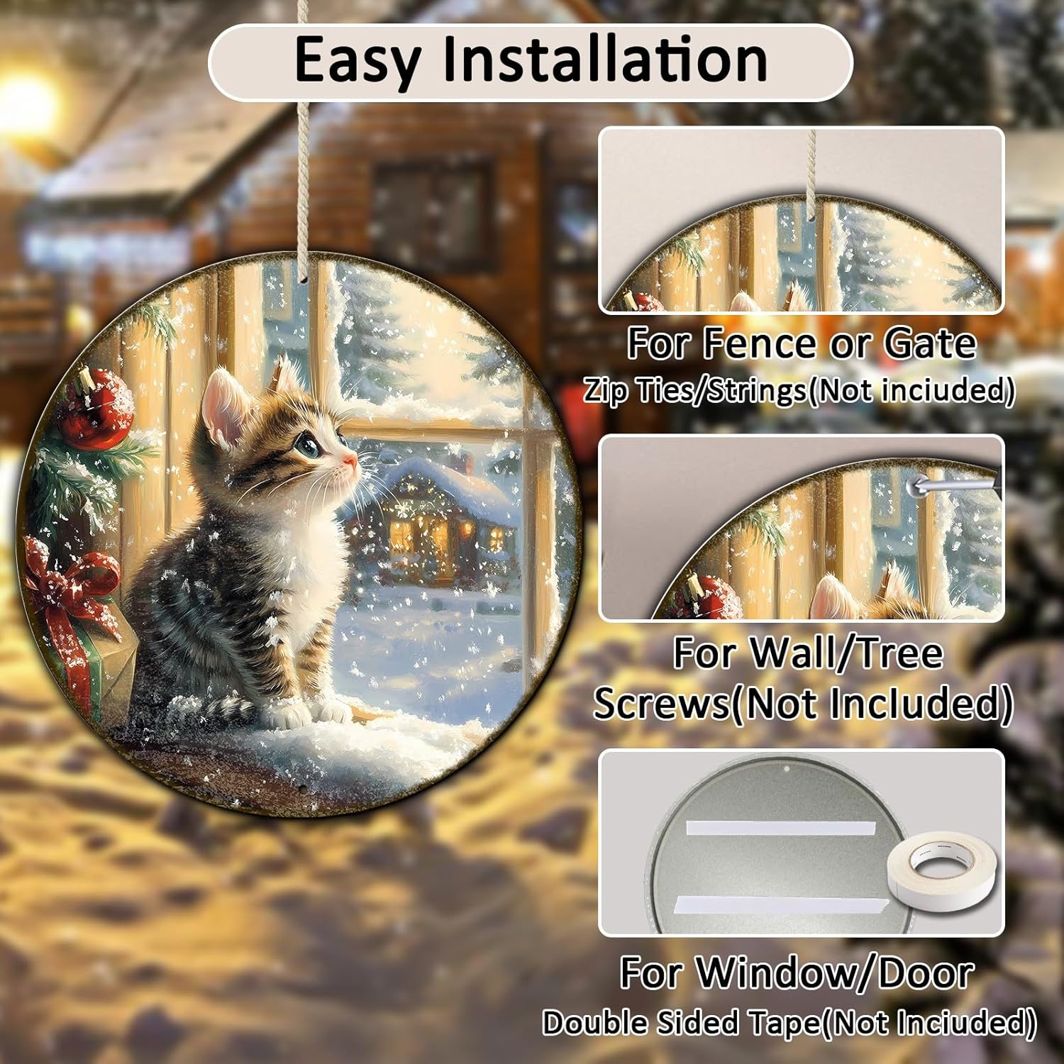 Round Christmas Sign Cats Vintage Metal Sign Christmas Kitten Retro Tin Sign Wall Decor for Home Office Bar Club Man Cave 8 * 8 in