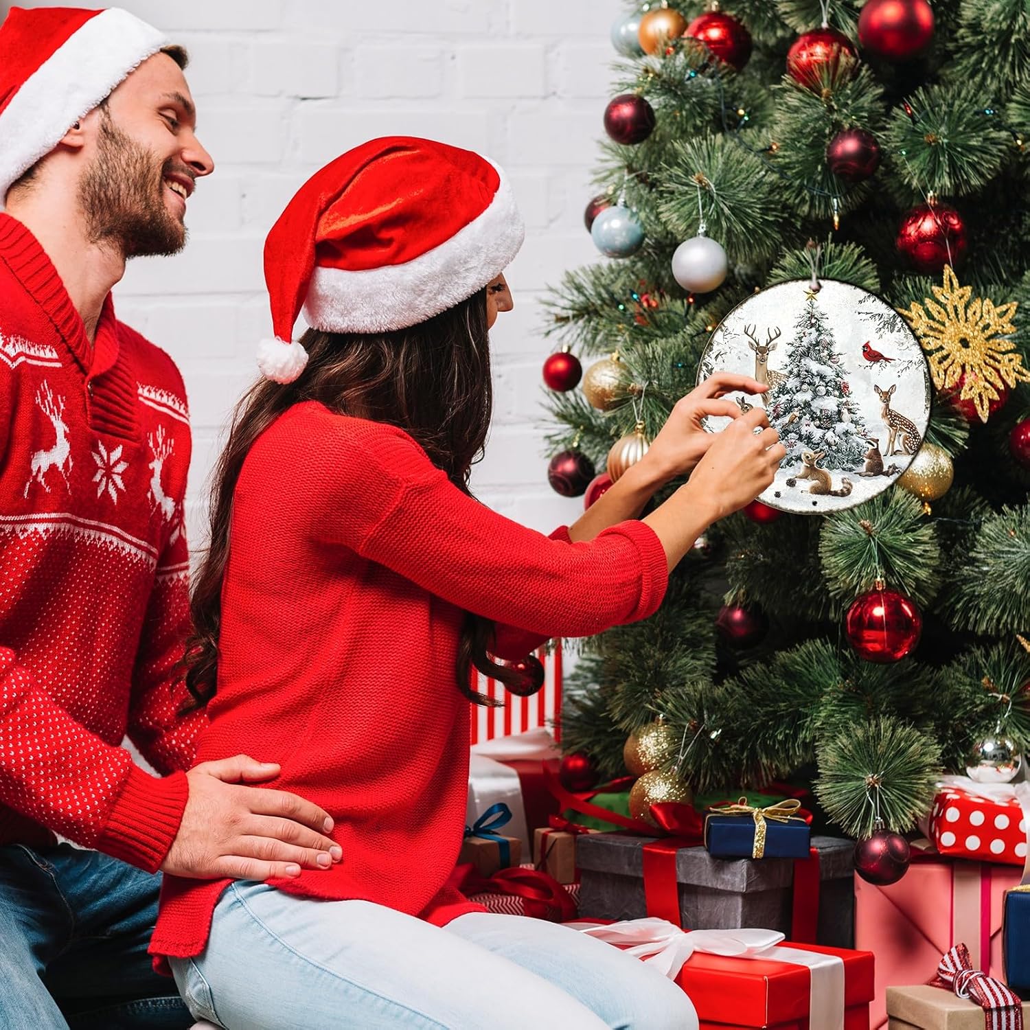 Round Christmas Snow Animals Metal Tin Sign - Vintage Christmas Tree & Winter Sign for Home & Outdoor Decorations - 8 * 8 in