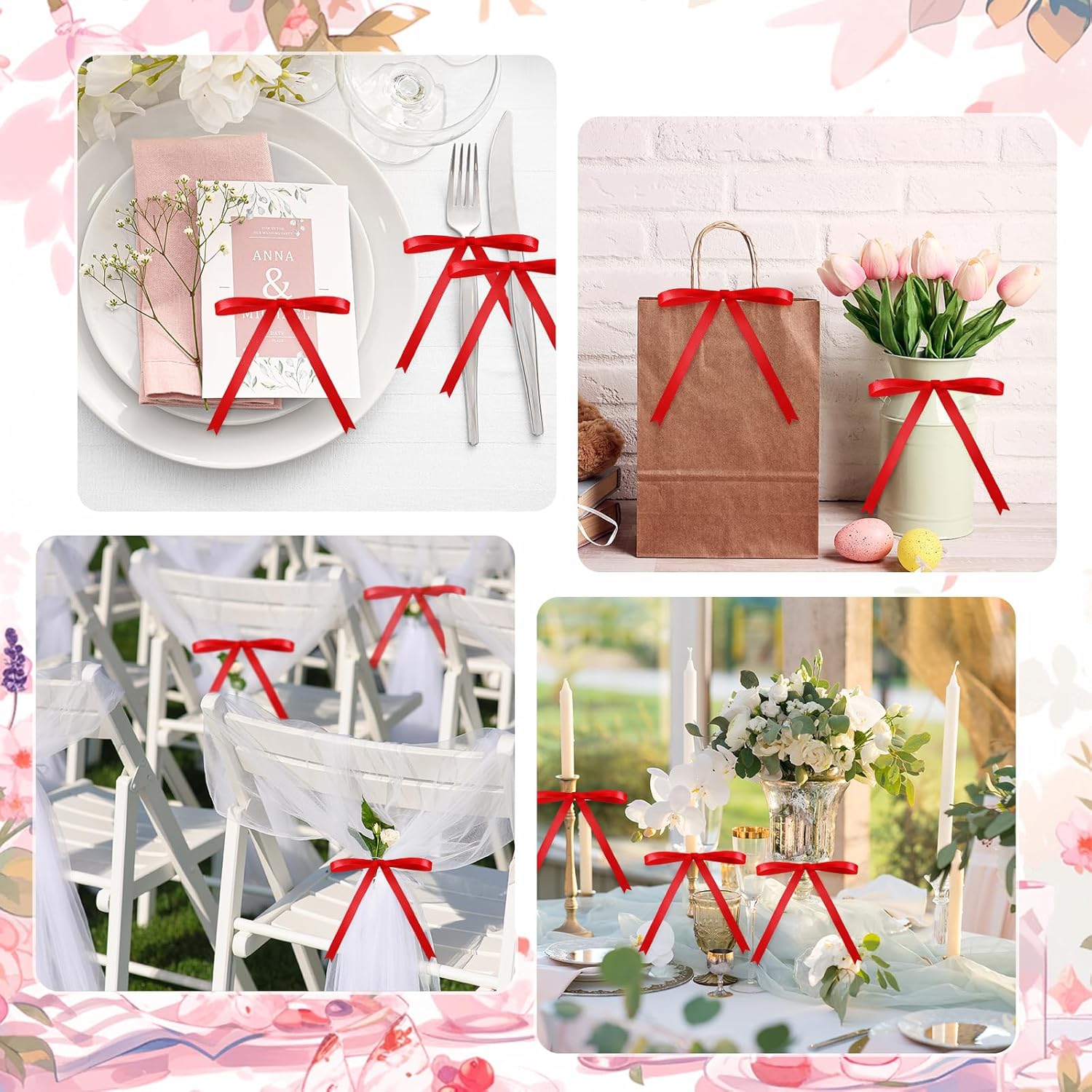 - User Friendly: these red satin bows for crafts are handmade and pre tied, including a detachable twist tie at the back that simplifies their use and storage; They are convenient and practical, allowing you to easily attach to places or items you want to decorate, such as gift wrap, cookie bags, rattan bags, DIY crafts; These bows can save you time and provide you with decorative inspiration when making crafty bows