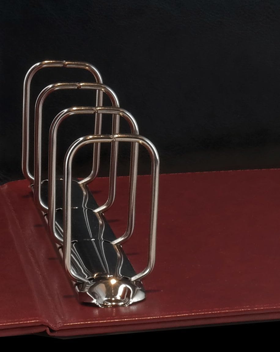 - 4 Q-Ring MECHANISM: Offers a secure and easy way to add or remove pages, accommodating a variety of large-size and standard-sized inserts with the Q-Ring design aligning pages in a lay-flat configuration when open while saving internal space over D-Ring and O-Ring designs, all while boasting the added benefit of the fourth ring: security, stability and the reduction of wear on pages bearing heavier contents