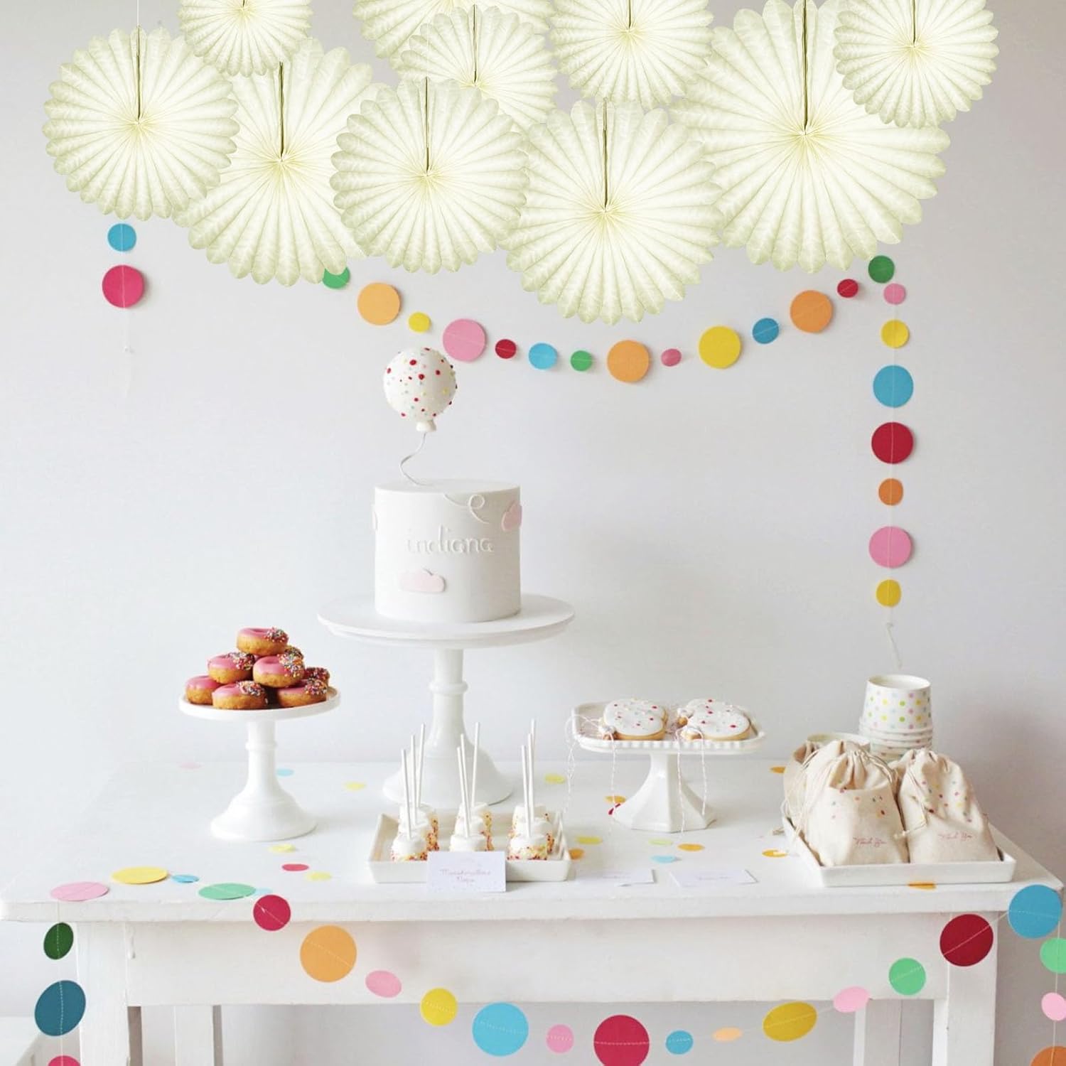 20 Pcs Cream White Hanging Paper Fan, Hanging Honeycomb Round Paper Fans for Weddings, Birthdays, Christmas, Baby Showers, Classroom, Events Ceiling Party Supplies Decorations