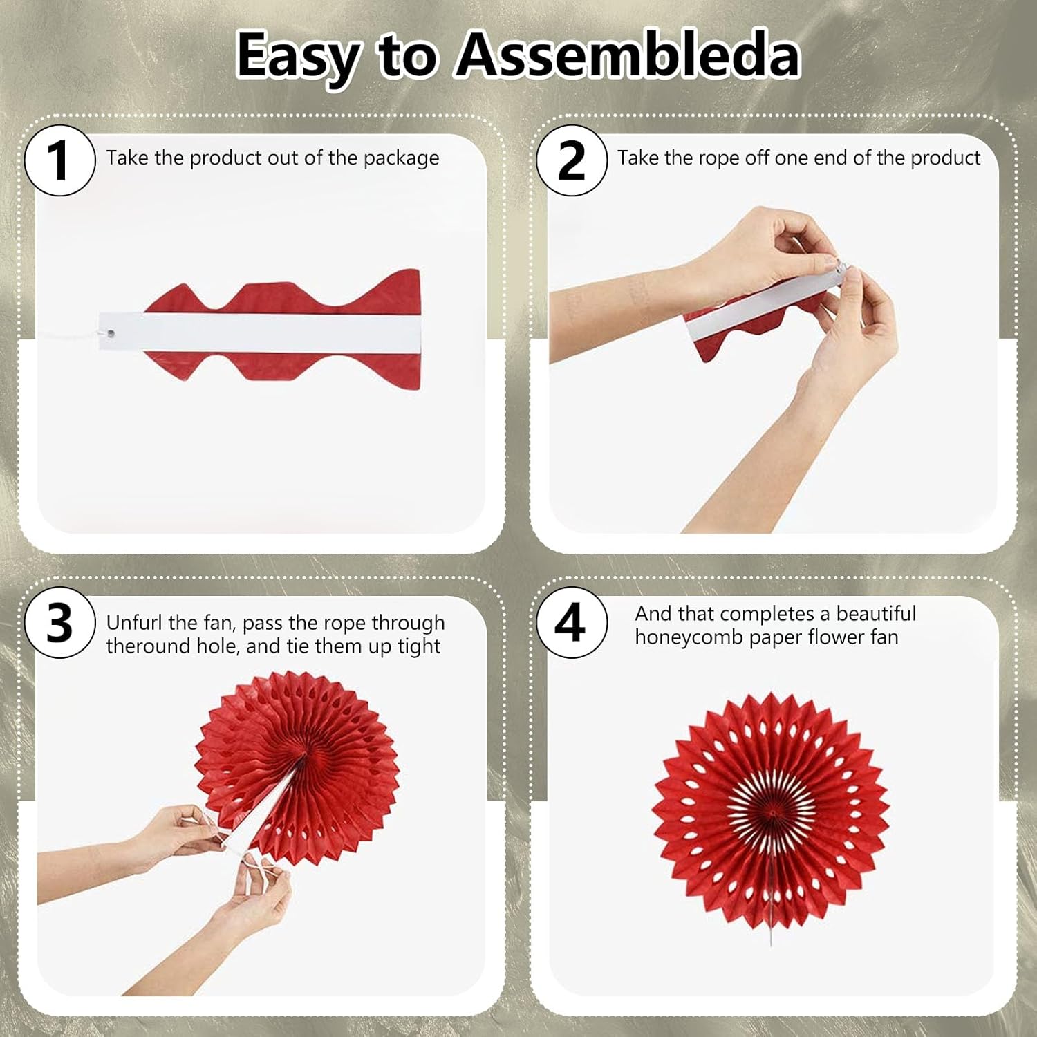 - 【Hanging paper fan set】Paper fan set includes 20 paper fans of different sizes, among which the paper flower fan size is 14 inches * 3, 12 inches * 5, 8 inches * 6, and 6 inches*6.