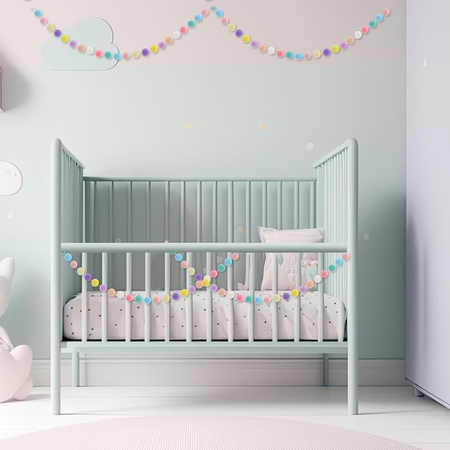 2 Pcs Pom Pom Garland 9.8 Feet 30 Balls Felt Ball Garland Pastel Ball Banner Cute Pompom Decorative Garland Rainbow Colorful Ball Ornament Garland for Wall Christmas Tree Decoration(10 Macaron Colors)