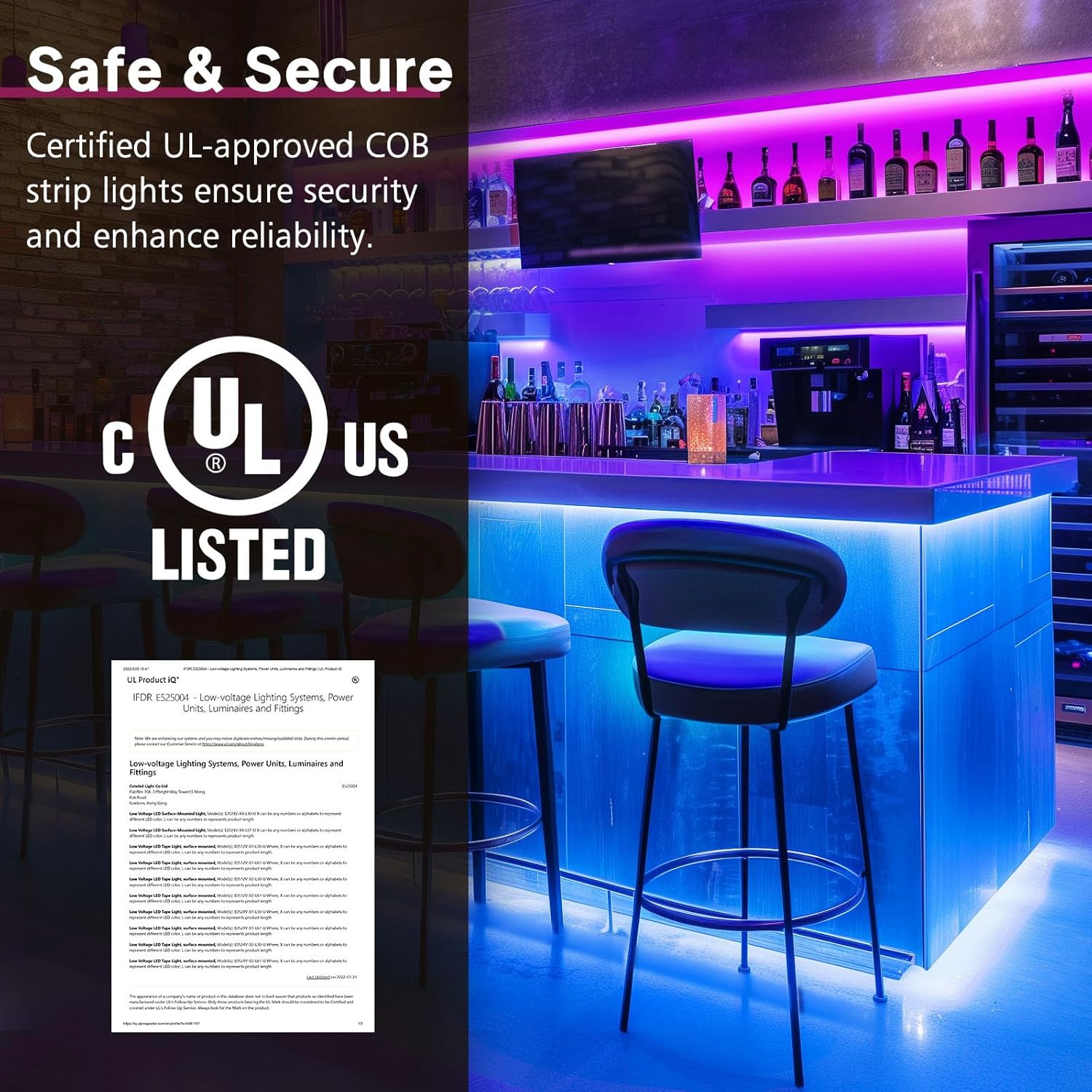 - ăSafety and Quality Controlă Enjoy peace of mind with our UL Listed strip lights and ETL power supply. Third-party tested for safety, quality, and energy efficiency, meet strict standards for security and satisfaction. Ideal for various applications, they offer reliability, longevity, and reduced energy costs.