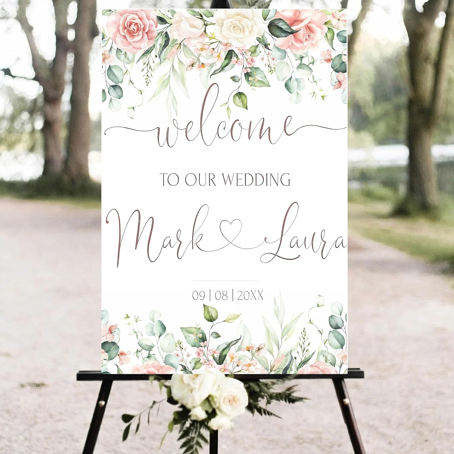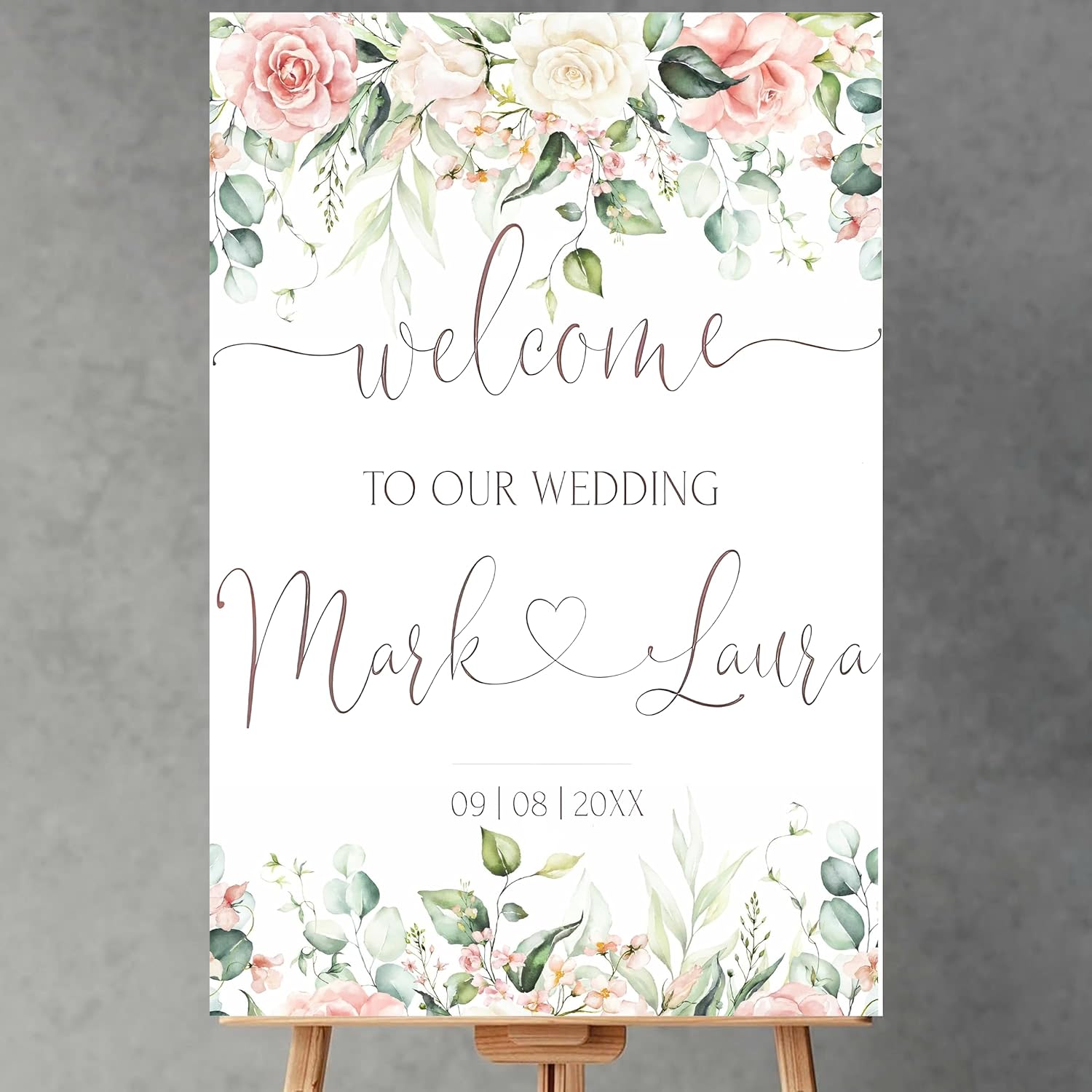 - Welcome your guests to your wedding in a warm and memorable way with Personalized Plastic Wedding Welcome Sign. This product is designed to create personal interest and an impressive welcome for everyone attending this memorable event.