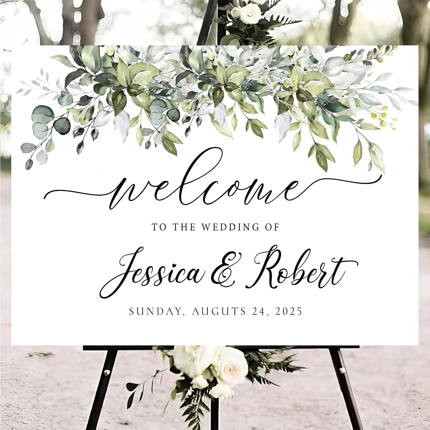 Personalized Wedding Welcome Sign, Welcome To Our Wedding Sign, Custom Design, Greenery Wedding Welcome Sign, Welcome To Our Wedding Sign, Wedding Rehearsal Sign, Greenery, Eucalyptus, Herbal,