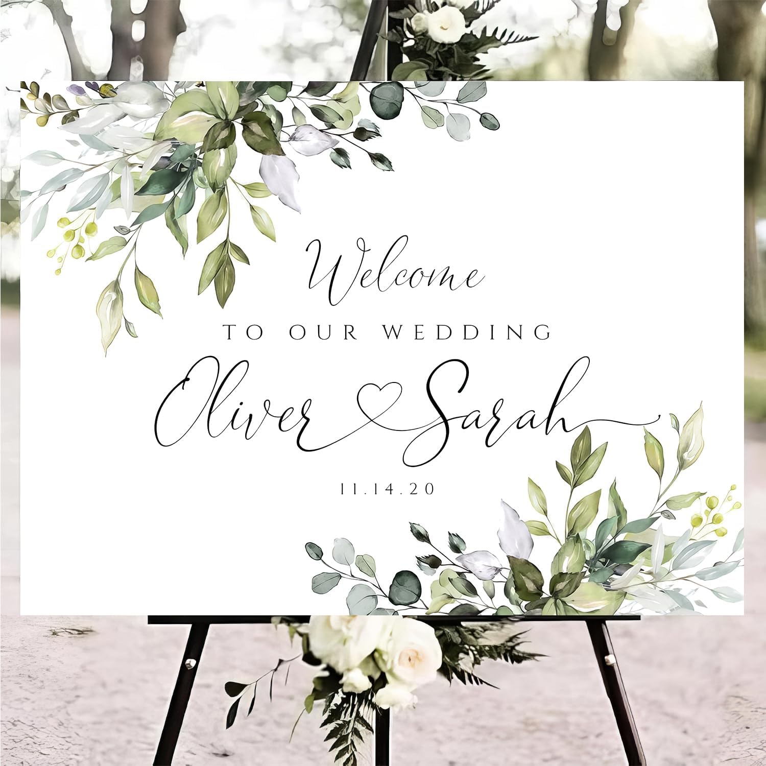 - Welcome your guests to your wedding in a warm and memorable way with Personalized Plastic Wedding Welcome Sign. This product is designed to create personal interest and an impressive welcome for everyone attending this memorable event.