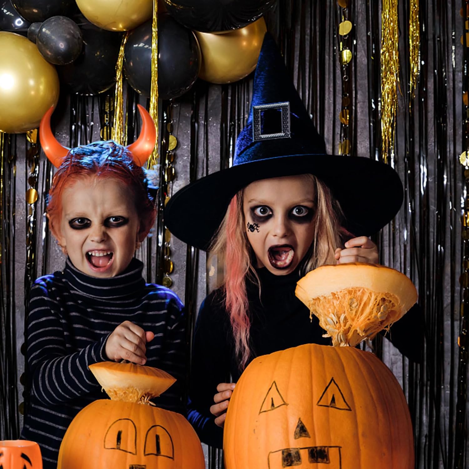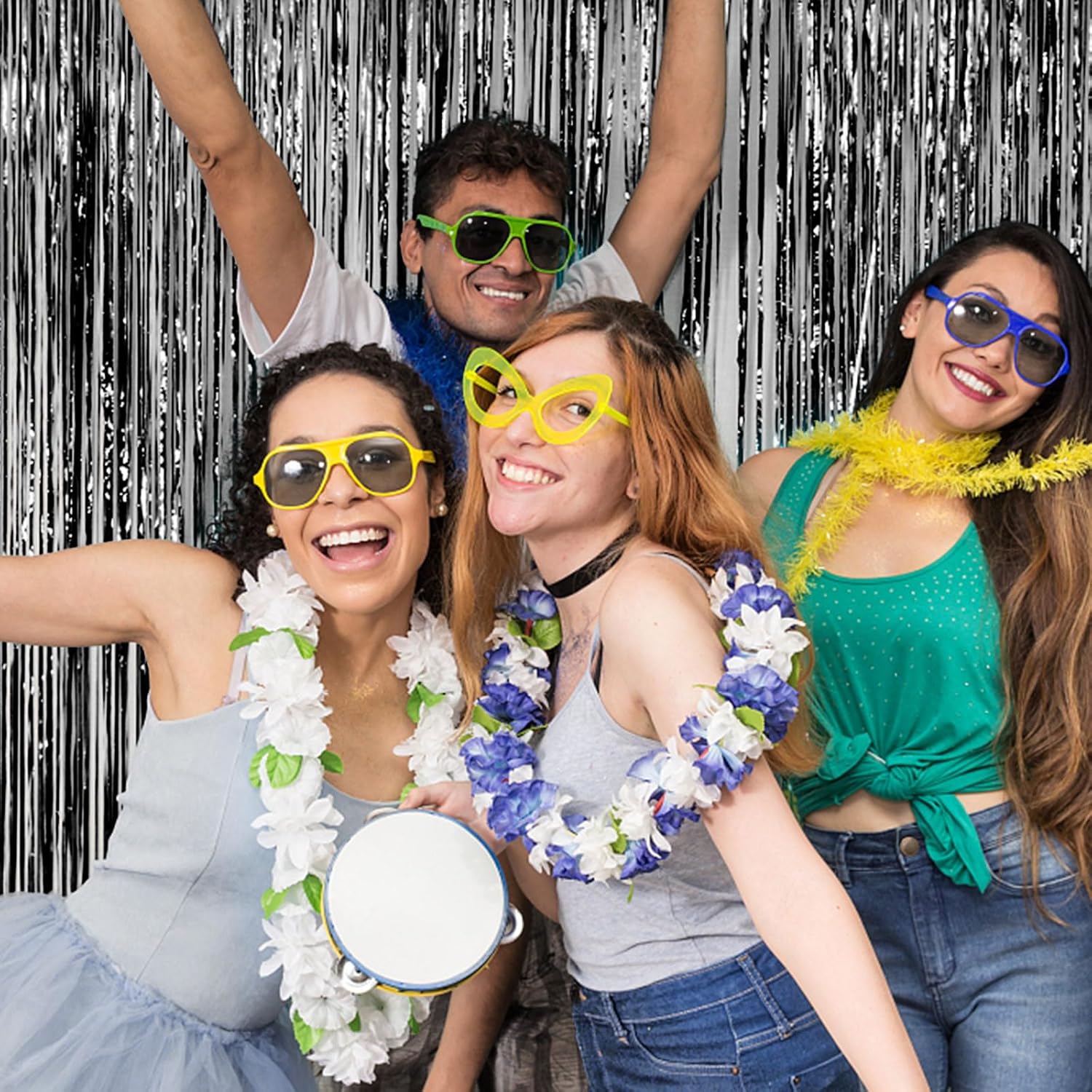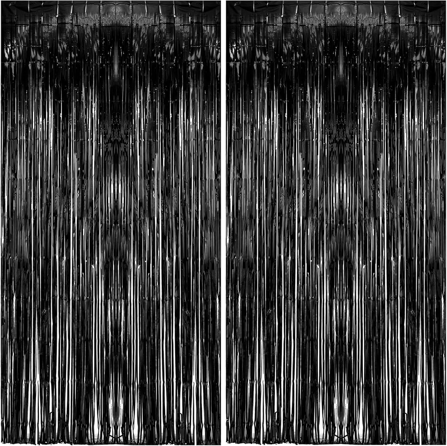 2 Pack Foil Curtain Backdrop Black Metallic Tinsel Foil Fringe Curtains Photo Booth Props for Birthday Wedding Engagement Baby Shower Bachelorette Christmas Holiday Celebration Party Decorations