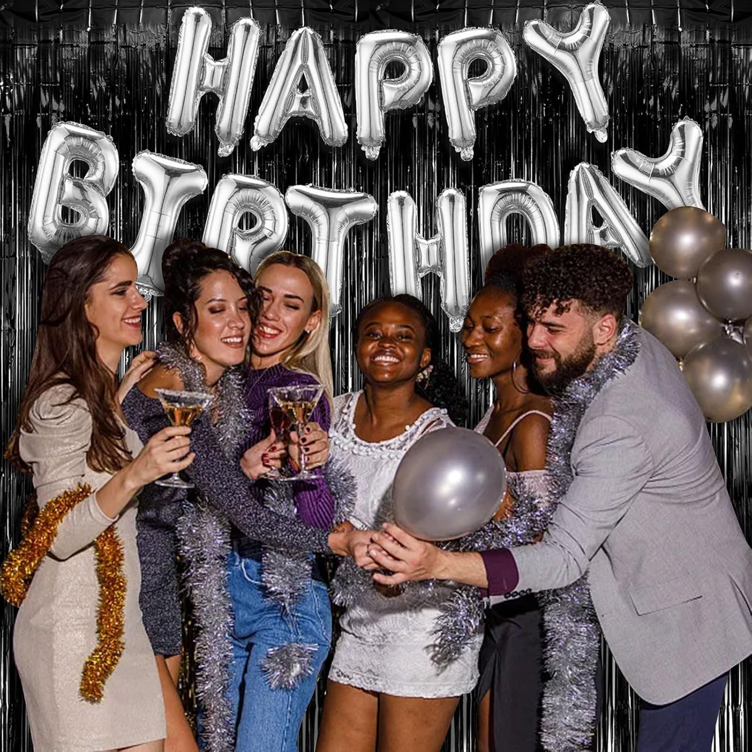 20 Pack Foil Curtain Backdrop Black Metallic Tinsel Foil Fringe Curtains Photo Booth Props for Birthday Wedding Engagement Baby Shower Bachelorette Christmas Holiday Celebration Party Decorations
