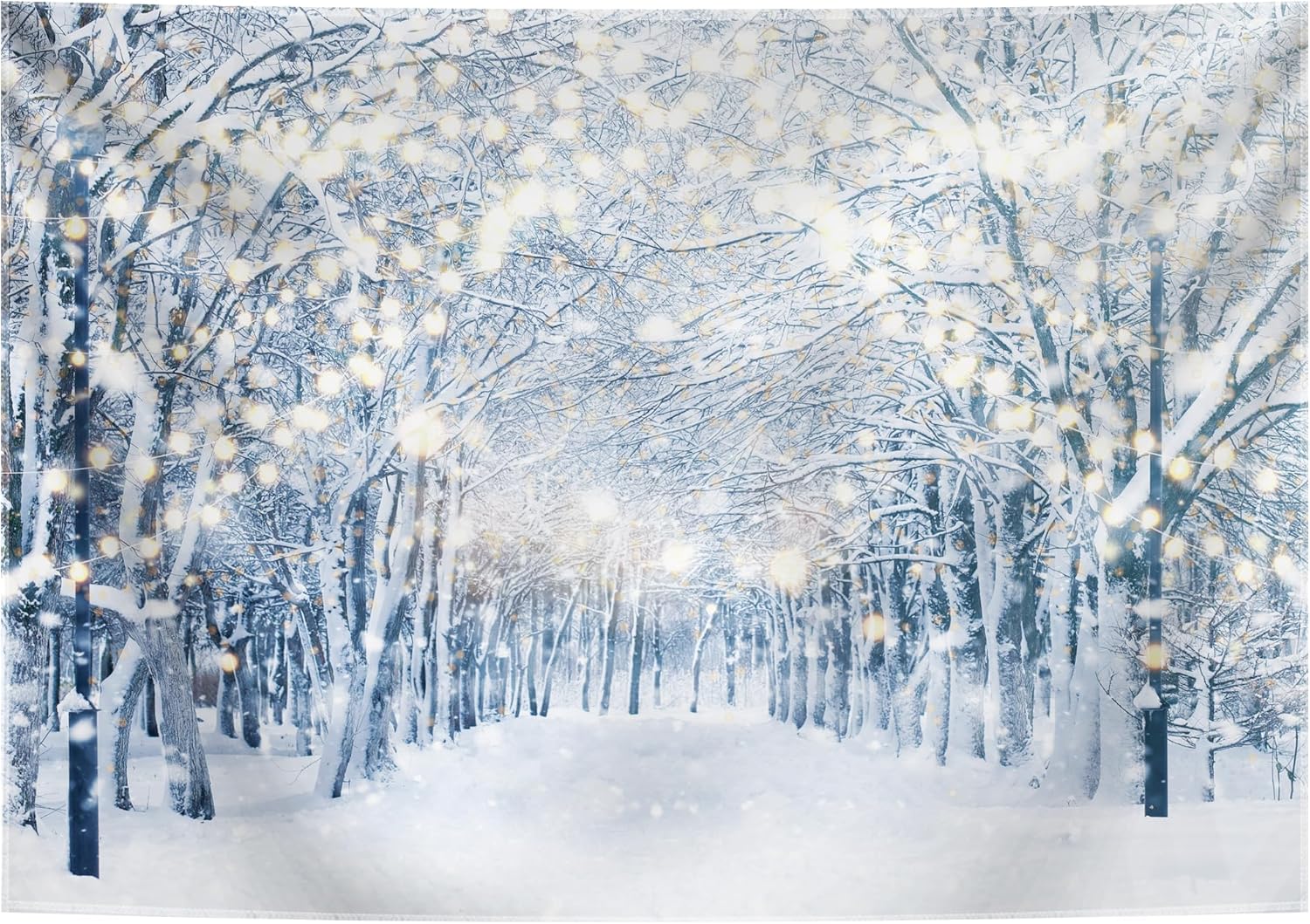 12x8FT Winter Snowy Scene Photography Backdrop Winter Wonderland Landscape Snowflake Tree Snowy Background Bokeh Glitter White Snow Forest Party Photo Booth Studio Props