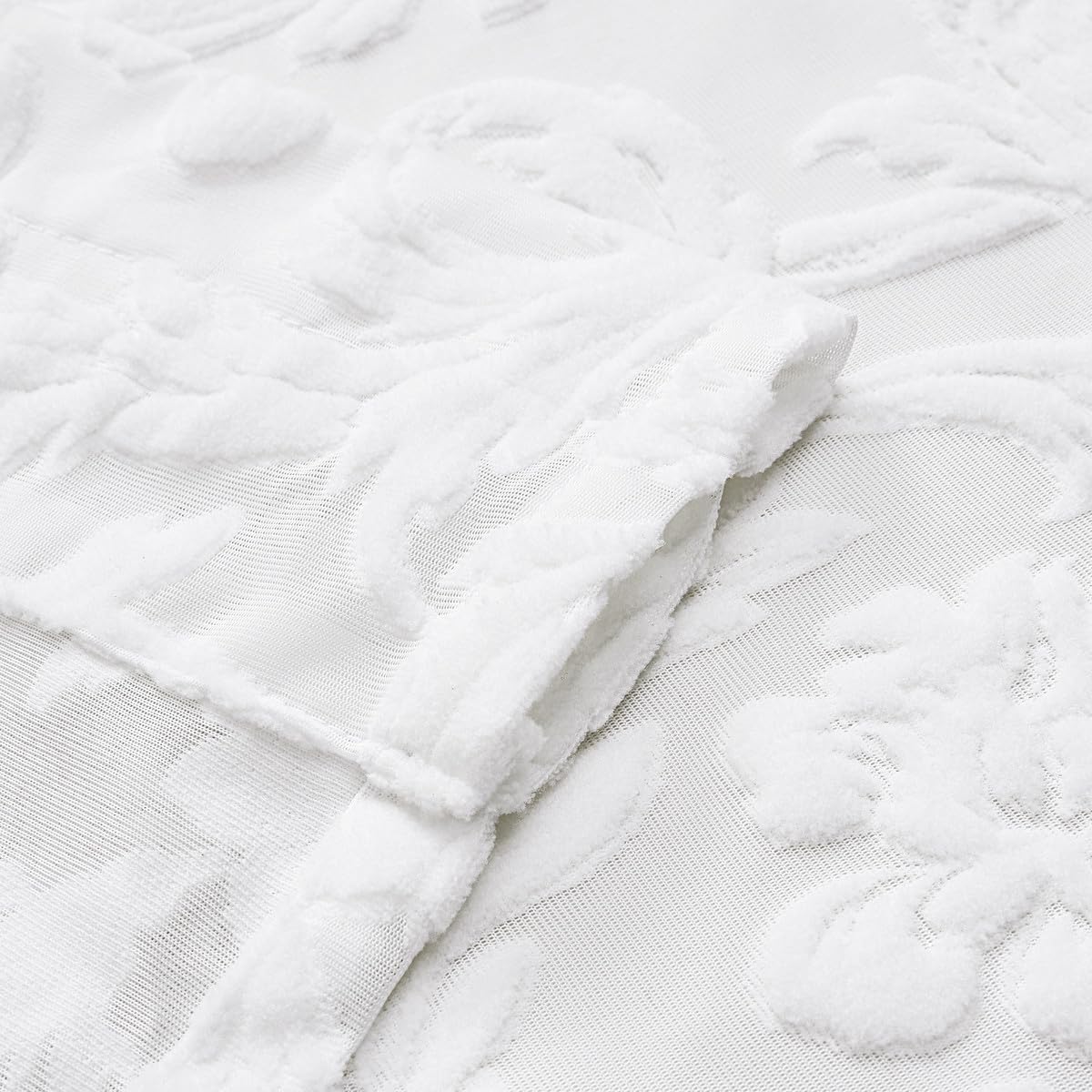 Sheer Curtains 84 Inch Length for Living Room & Bedroom Rod Pocket Boho Farmhouse Drapes with Scroll Floral Patterned 3D Flocked Texture & Rococo Motifs White Sheer Curtain Set of 2 Panels 52"W*84"L