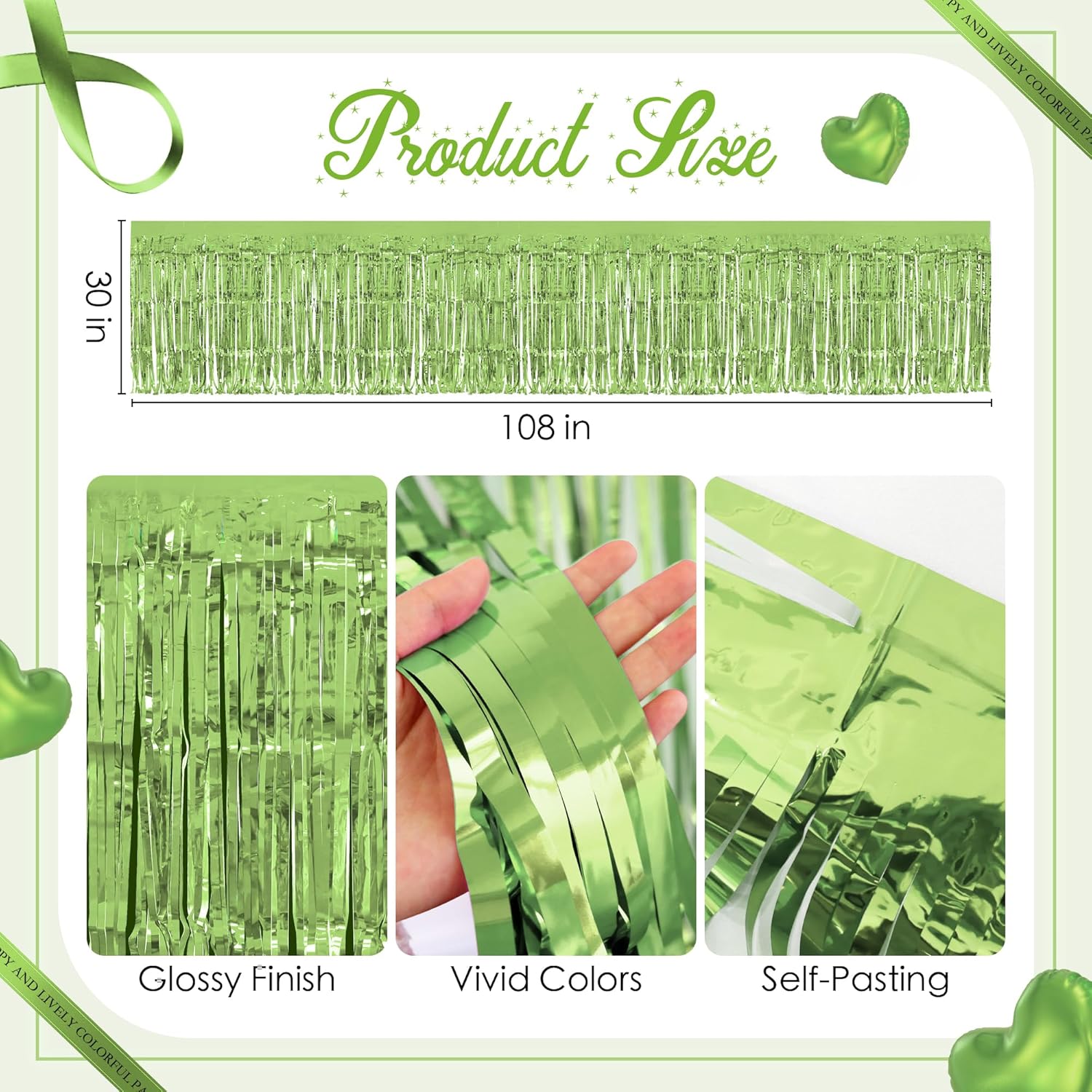 2 Pack Light Green Table Skirts, 29x108" Metallic Foil Tinsel Fringe Table Skirts for Rectangle Tables Streamer Curtains Backdrop, Party Decorations for Birthdays Weddings Holidays