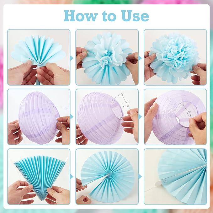 - Complete Party Kit: This all-in-one set includes everything you need for a stunning birthday decor – a "Happy Birthday" banner, pastel paper fans, tissue pom poms, and lanterns. Everything you need to make your celebration truly memorable.
