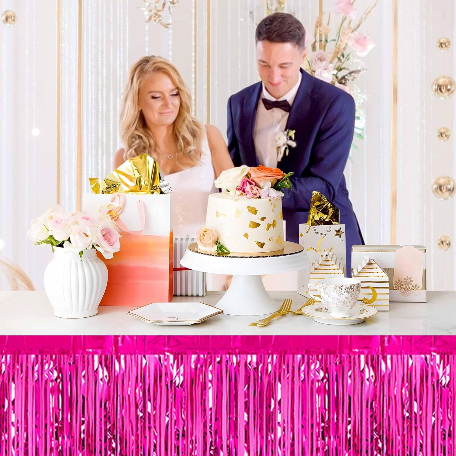 3 Pack 29 x108 Inch Fuchsia Foil Fringe Table Skirts Metallic Banner for Tinsel Streamer Garland Backdrop for Parade Floats Mother's Day, Graduate, Birthday, Wedding Party Decoration