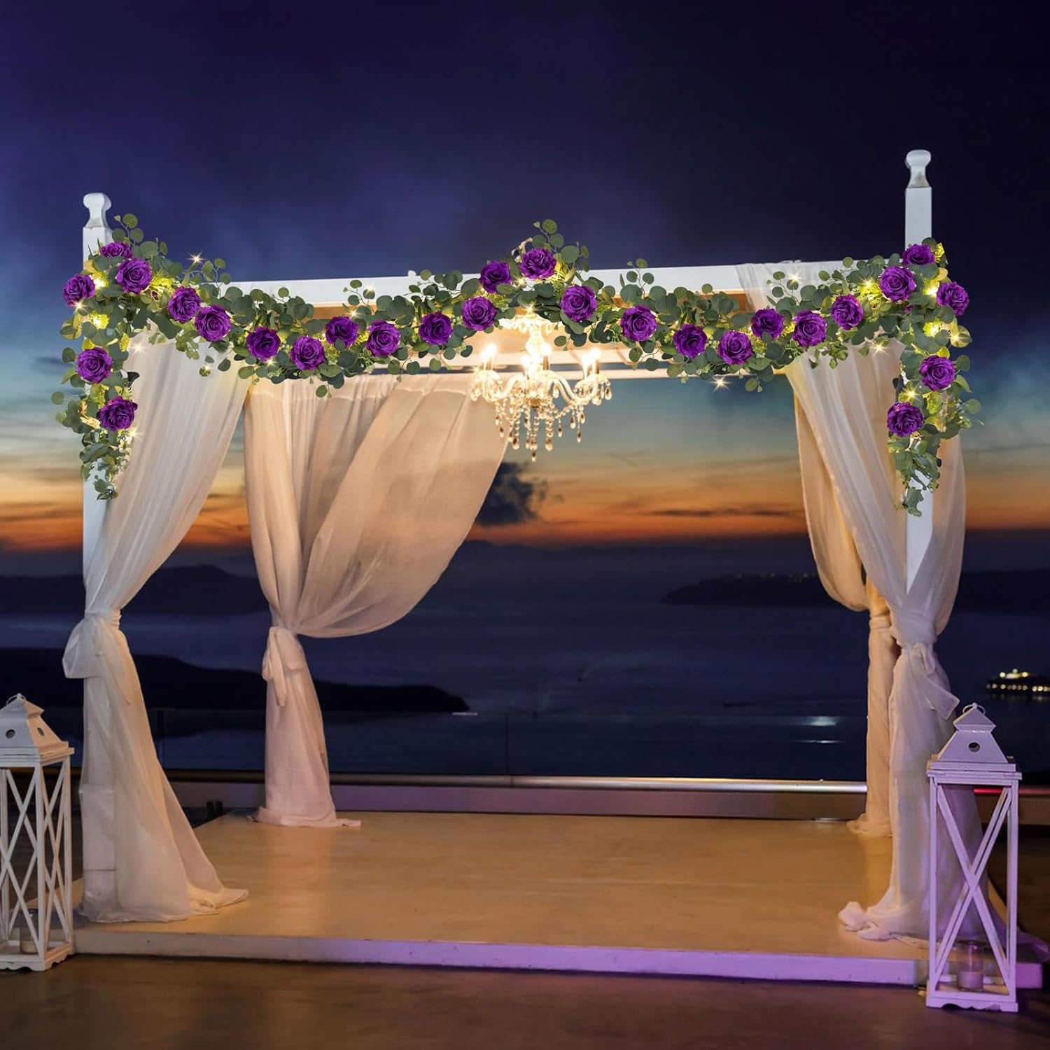 - Generous Length & Lifelike Details: Each artificial garland measures 6.6FT/80" in length and is adorned with 12 purple roses (each approximately 4" in diameter) and abundant gypsophila flowers. The generous length and realistic design make these faux garlands ideal for draping over table, arch, or backdrop