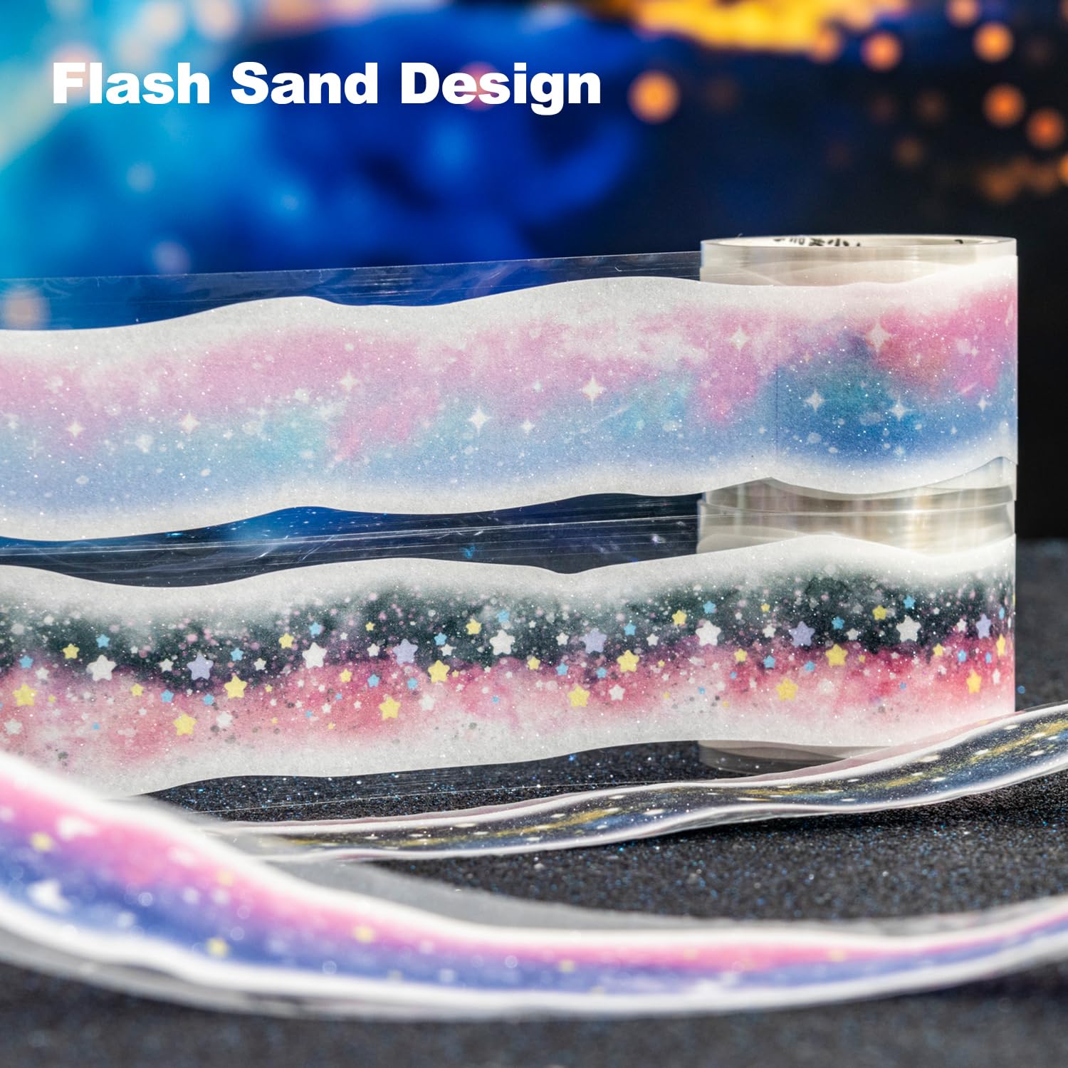- Galaxy-Themed Glitter Design: Each roll features a unique galaxy-inspired pattern with shimmering glitter, adding a celestial and dreamy touch to your scrapbooking, journaling, and DIY projects. The design is ideal for creating cosmic-themed crafts that stand out